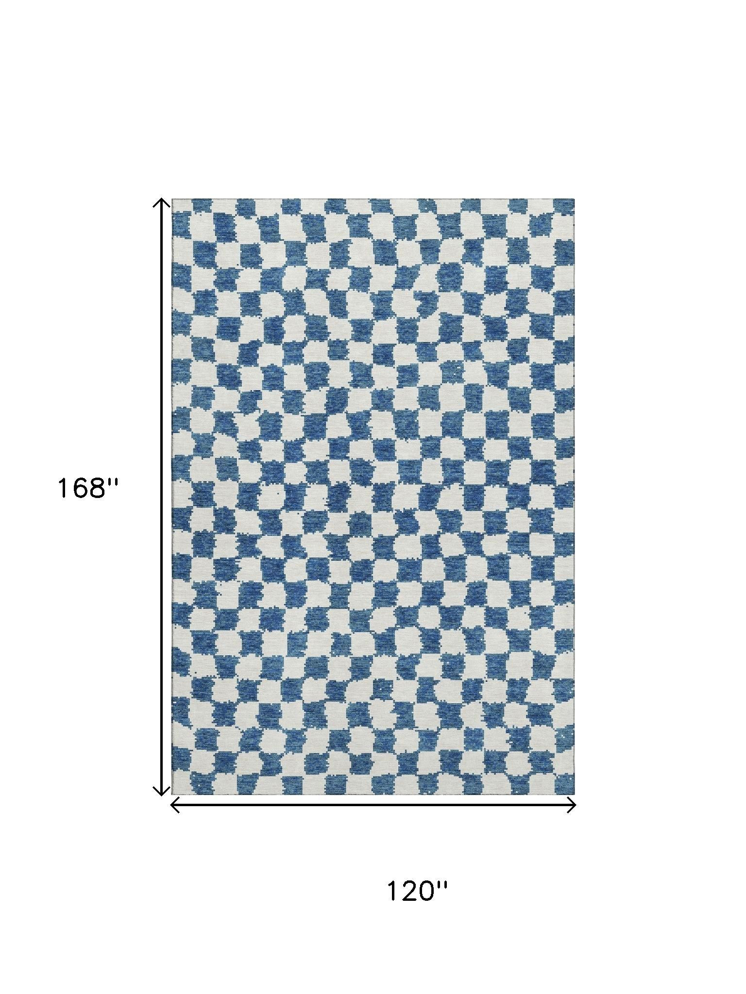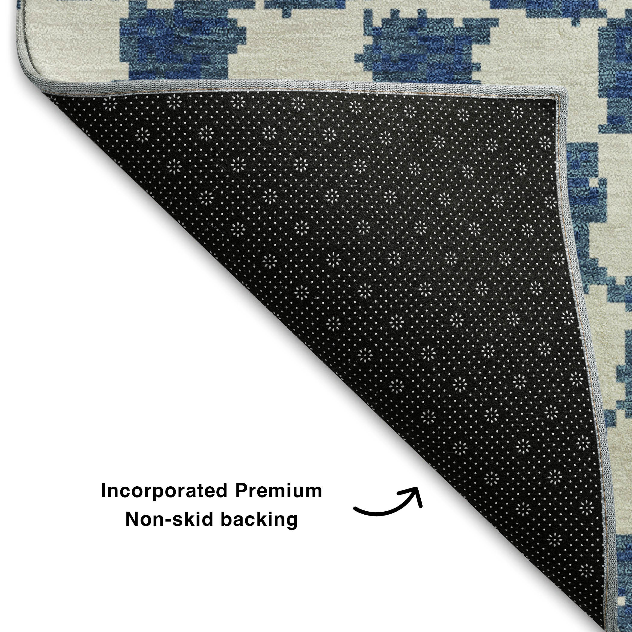 This 10-foot x 14-foot navy blue and ivory geometric washable area rug with uv protection, is a great way to add warmth to a room. Ideal for spaces with kids and pets, this rug is stain resistant to help repel dirt and spilled liquids. Built to last, this rug crafted from polyester fibers is known for its durability and long lasting appeal. Rugs are a great way to showcase your style, hide imperfections, warm your home and reduce noise. This larger sized, transitional styled rug is ready to create a focal point or statement piece in your room. 120.00-inch h x 168.00-inch w x 0.39-inch d.