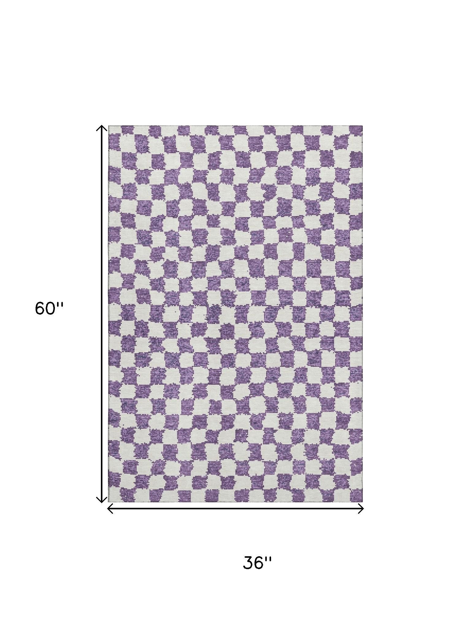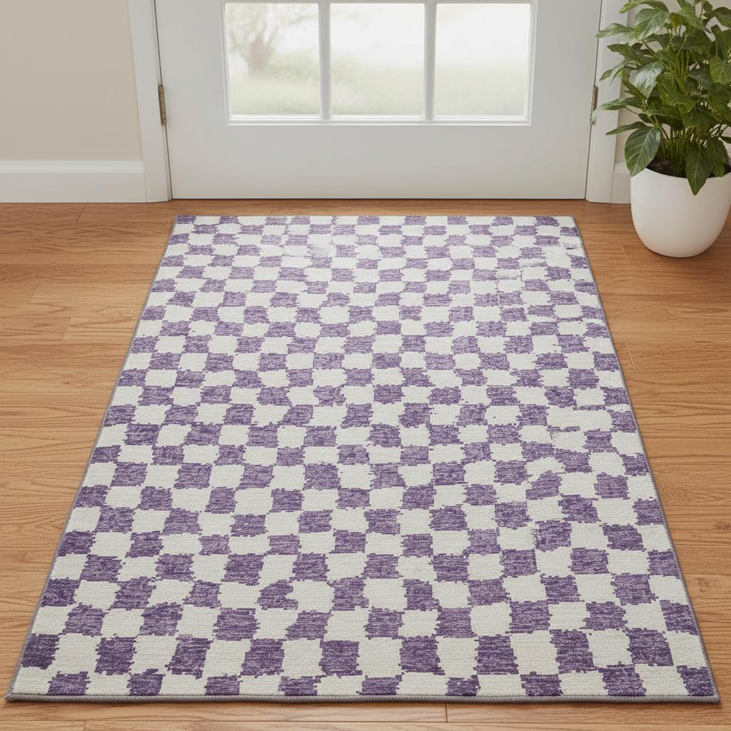 This 3-foot x 5-foot purple and ivory geometric washable area rug with uv protection, is a great way to add warmth to a room. Ideal for spaces with kids and pets, this rug is stain resistant to help repel dirt and spilled liquids. Built to last, this rug crafted from polyester fibers is known for its durability and long lasting appeal. Rugs are a great way to showcase your style, hide imperfections, warm your home and reduce noise. This smaller sized, transitional styled rug is just what you need for your walkway, bedside, in front of door, cabinet, refrigerator, or chair. 36.00-inch h x 60.00-inch w x 0.39-inch d.