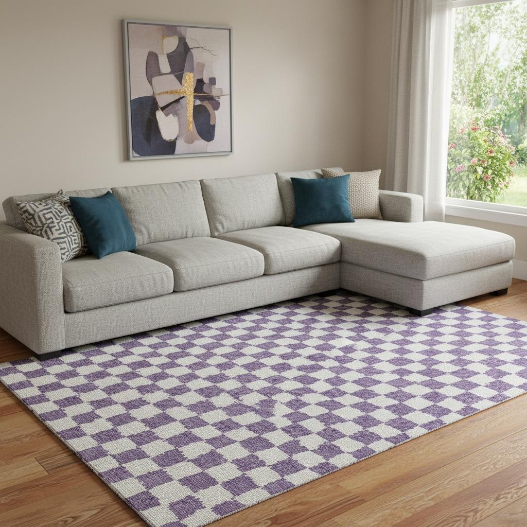 Add some artistry to your room with this 8-foot x 10-foot purple and ivory geometric washable area rug with uv protection. Ideal for spaces with kids and pets, this rug is stain resistant to help repel dirt and spilled liquids. Built to last, this rug crafted from polyester fibers is known for its durability and long lasting appeal. Rugs are a great way to showcase your style, hide imperfections, warm your home and reduce noise. This larger sized, transitional styled rug is ready to create a focal point or statement piece in your room. 96.00-inch h x 120.00-inch w x 0.39-inch d.