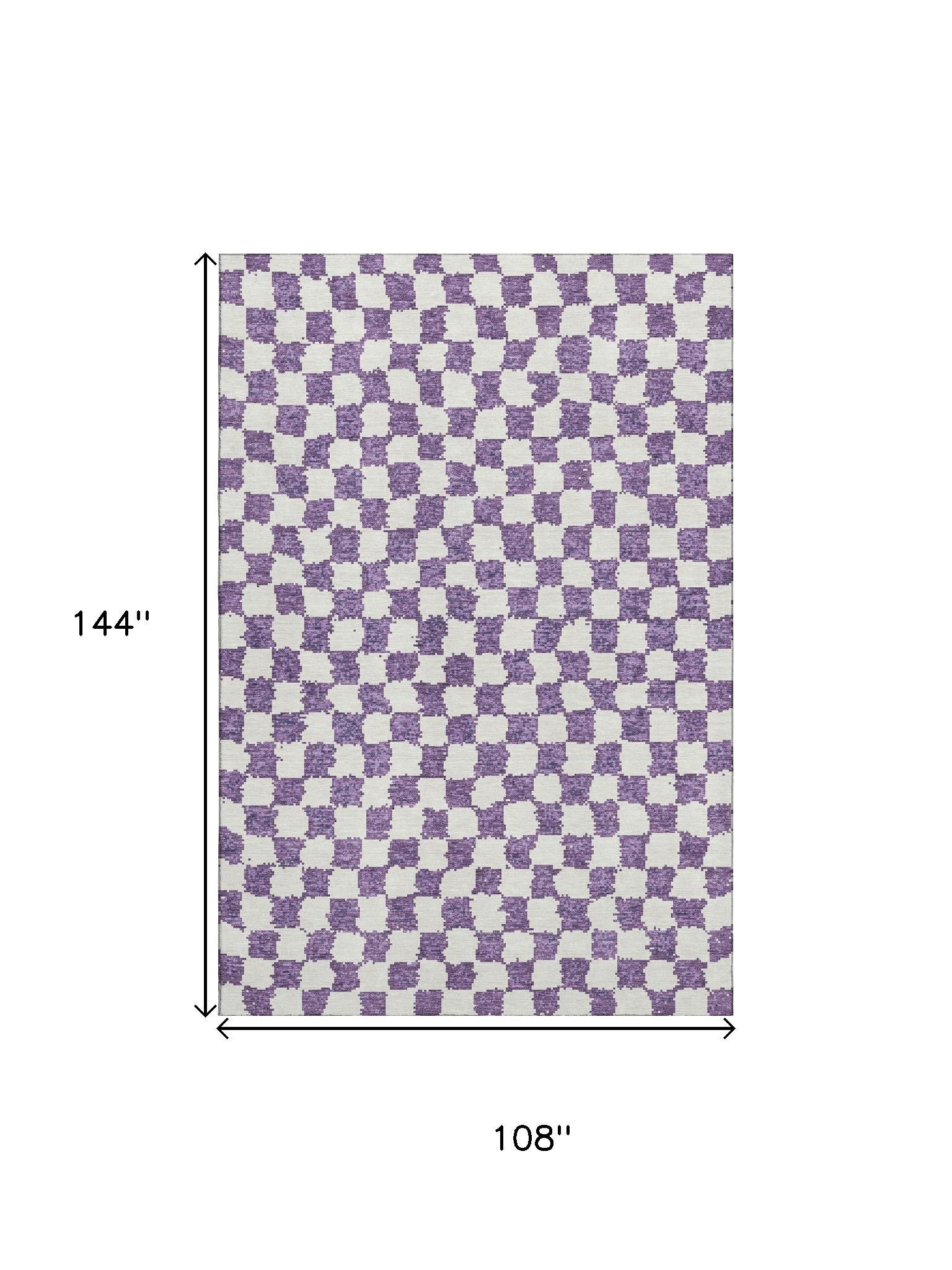 Add great coloration and comfortable texture to your space with this 9-foot x 12-foot purple and ivory geometric washable area rug with uv protection. Ideal for spaces with kids and pets, this rug is stain resistant to help repel dirt and spilled liquids. Built to last, this rug crafted from polyester fibers is known for its durability and long lasting appeal. Rugs are a great way to showcase your style, hide imperfections, warm your home and reduce noise. This larger sized, transitional styled rug is ready to create a focal point or statement piece in your room. 108.00-inch h x 144.00-inch w x 0.39-inch d.