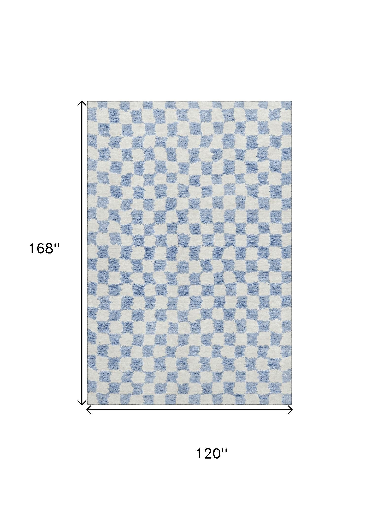 Set an inviting tone in your space with this 10-foot x 14-foot sky blue and ivory geometric washable area rug with uv protection. Ideal for spaces with kids and pets, this rug is stain resistant to help repel dirt and spilled liquids. Built to last, this rug crafted from polyester fibers is known for its durability and long lasting appeal. Rugs are a great way to showcase your style, hide imperfections, warm your home and reduce noise. This larger sized, transitional styled rug is ready to create a focal point or statement piece in your room. 120.00-inch h x 168.00-inch w x 0.39-inch d.
