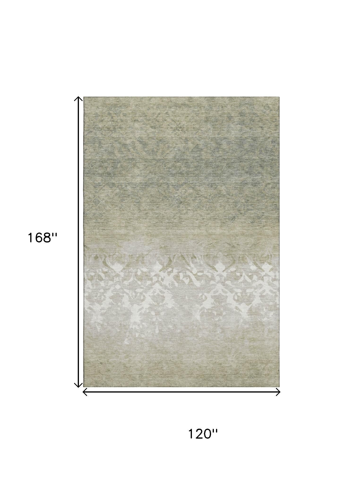 This 10-foot x 14-foot beige ivory and taupe damask washable area rug with uv protection, is a great way to add warmth to a room. Ideal for spaces with kids and pets, this rug is stain resistant to help repel dirt and spilled liquids. Built to last, this rug crafted from polyester fibers is known for its durability and long lasting appeal. Rugs are a great way to showcase your style, hide imperfections, warm your home and reduce noise. This larger sized, transitional styled rug is ready to create a focal point or statement piece in your room. 120.00-inch h x 168.00-inch w x 0.39-inch d.