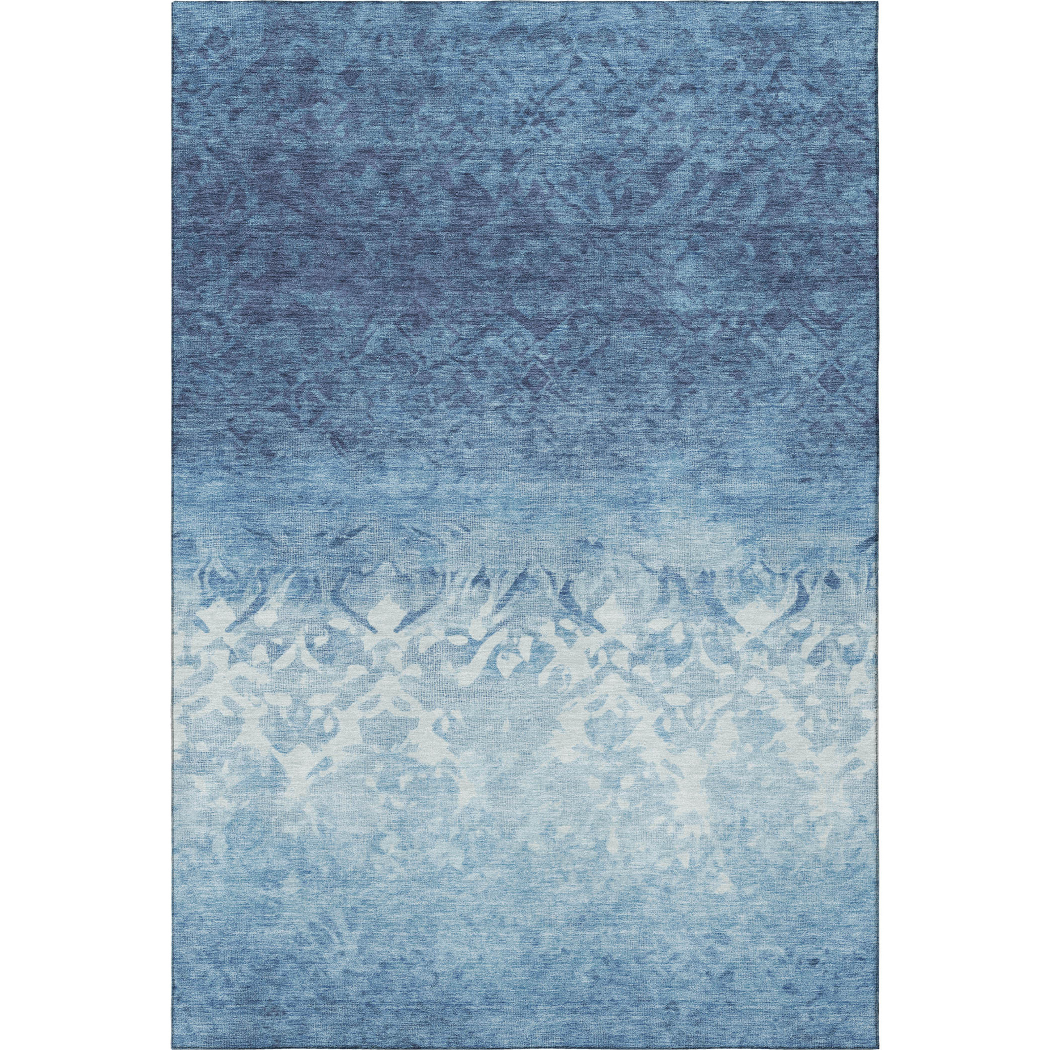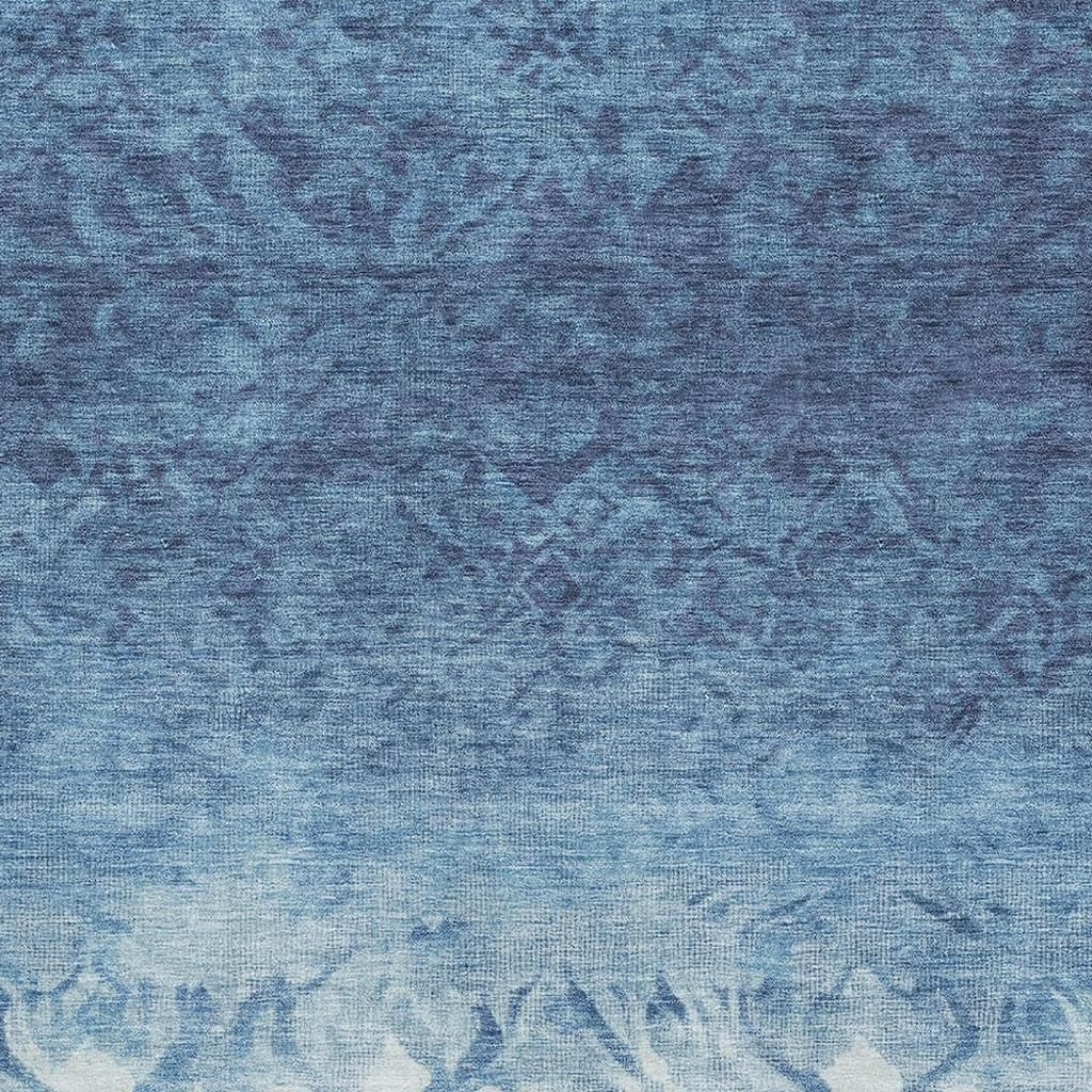 Set an inviting tone in your space with this 9-foot x 12-foot denim blue and ivory damask washable area rug with uv protection. Ideal for spaces with kids and pets, this rug is stain resistant to help repel dirt and spilled liquids. Built to last, this rug crafted from polyester fibers is known for its durability and long lasting appeal. Rugs are a great way to showcase your style, hide imperfections, warm your home and reduce noise. This larger sized, transitional styled rug is ready to create a focal point or statement piece in your room. 108.00-inch h x 144.00-inch w x 0.39-inch d.