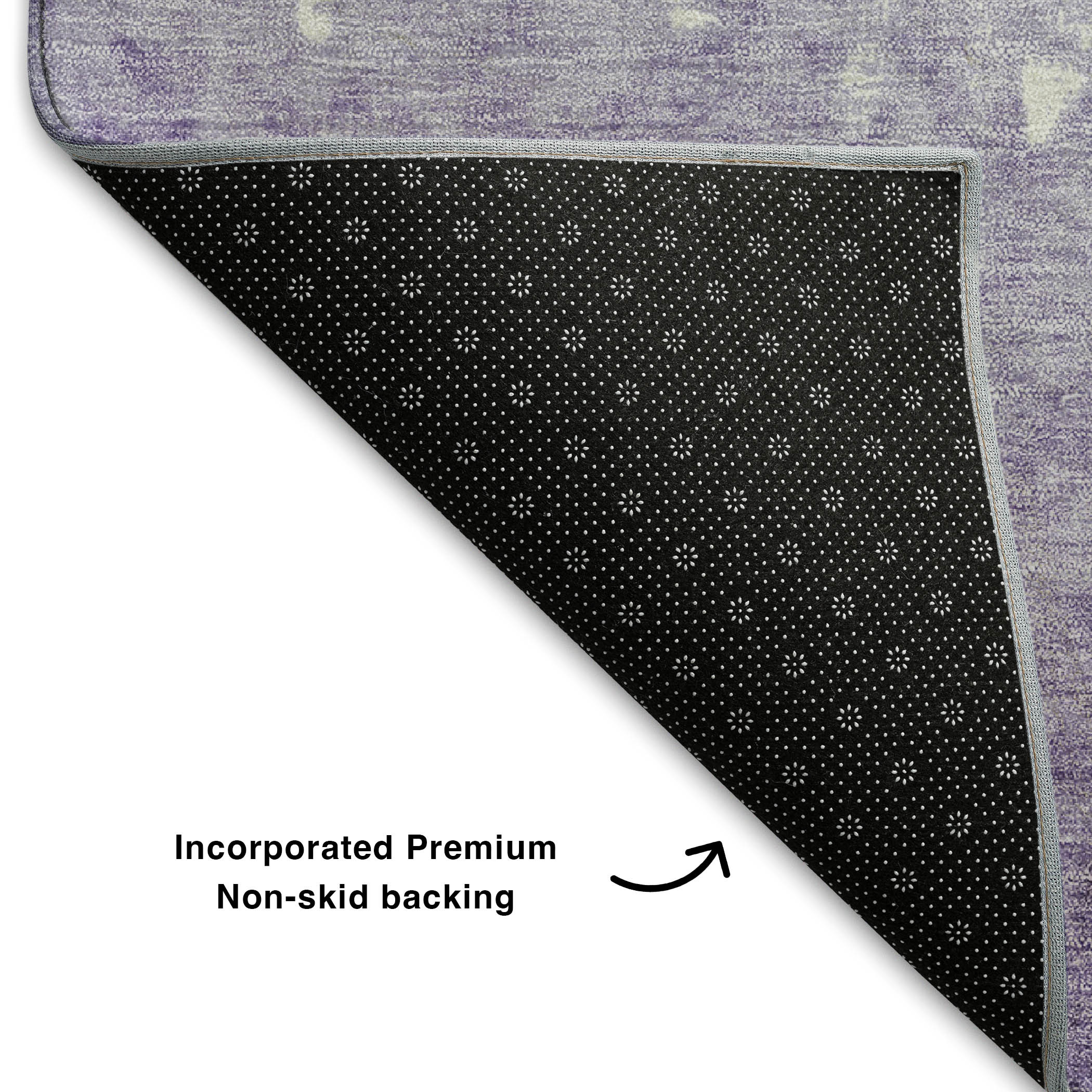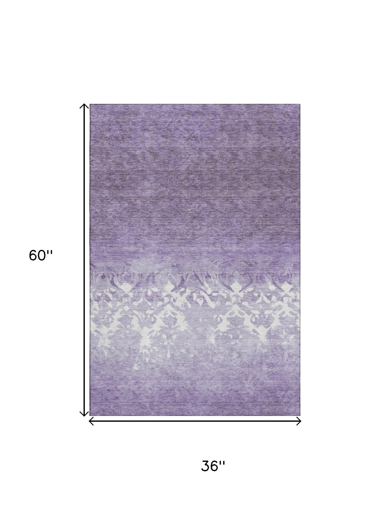 This 3-foot x 5-foot purple and ivory damask washable area rug with uv protection, is a great way to add warmth to a room. Ideal for spaces with kids and pets, this rug is stain resistant to help repel dirt and spilled liquids. Built to last, this rug crafted from polyester fibers is known for its durability and long lasting appeal. Rugs are a great way to showcase your style, hide imperfections, warm your home and reduce noise. This smaller sized, transitional styled rug is just what you need for your walkway, bedside, in front of door, cabinet, refrigerator, or chair. 36.00-inch h x 60.00-inch w x 0.39-inch d.