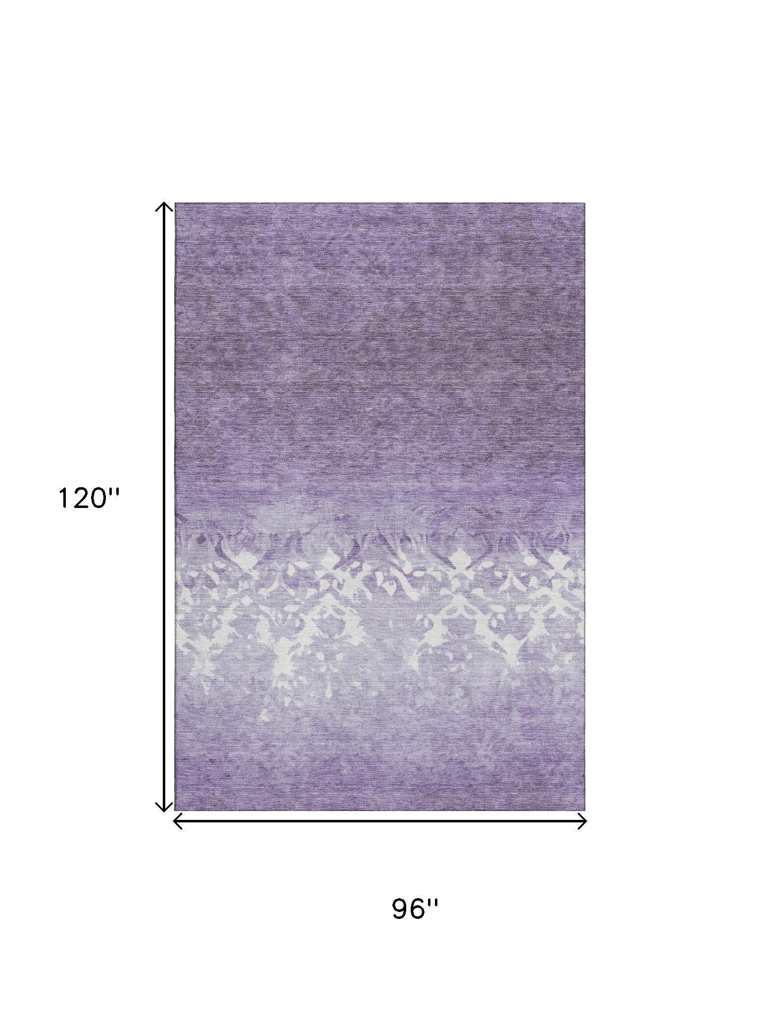Add some artistry to your room with this 8-foot x 10-foot purple and ivory damask washable area rug with uv protection. Ideal for spaces with kids and pets, this rug is stain resistant to help repel dirt and spilled liquids. Built to last, this rug crafted from polyester fibers is known for its durability and long lasting appeal. Rugs are a great way to showcase your style, hide imperfections, warm your home and reduce noise. This larger sized, transitional styled rug is ready to create a focal point or statement piece in your room. 96.00-inch h x 120.00-inch w x 0.39-inch d.