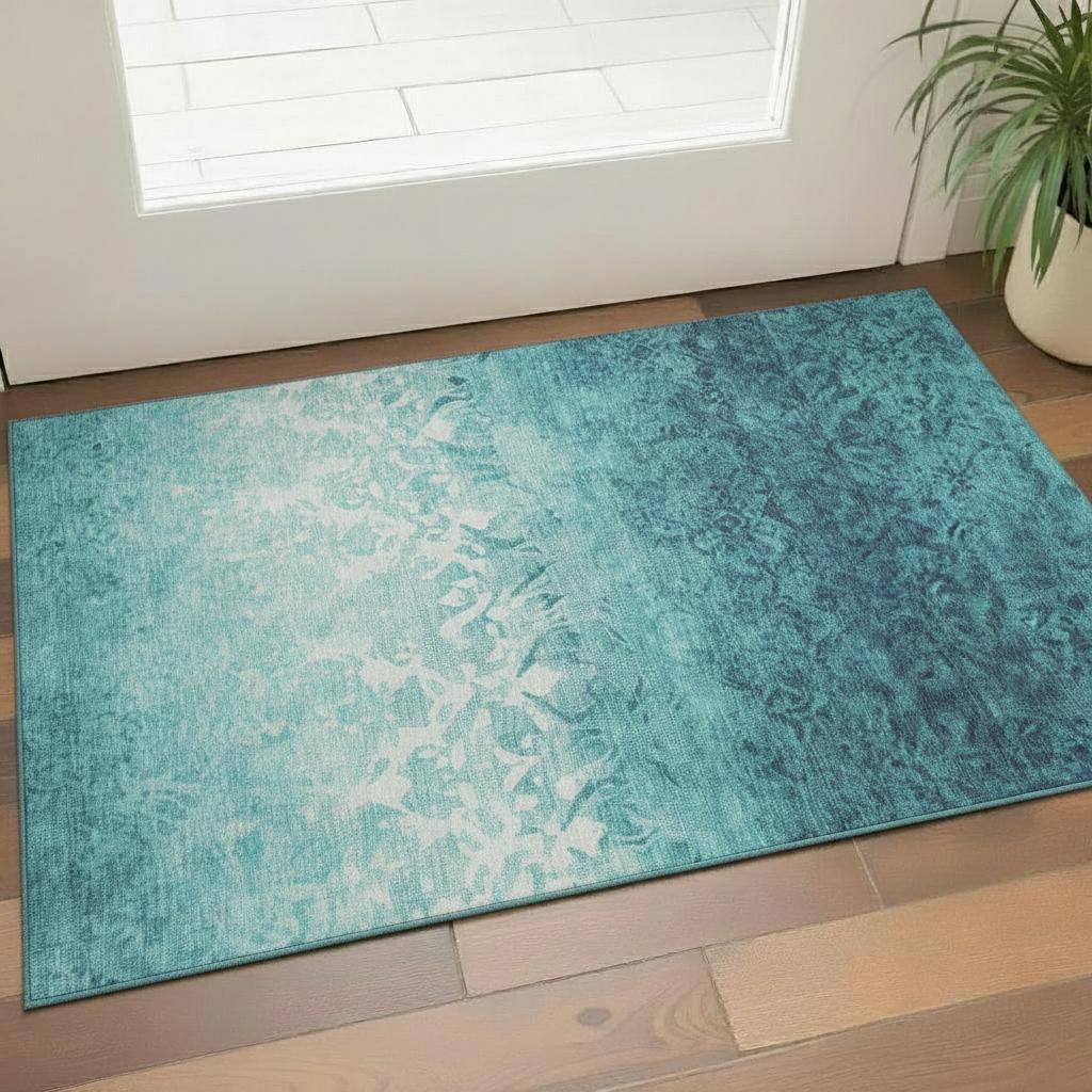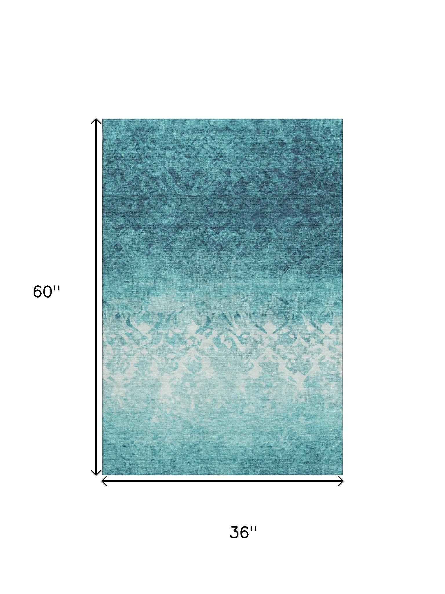 Add great coloration and comfortable texture to your space with this 3-foot x 5-foot teal and ivory damask washable area rug with uv protection. Ideal for spaces with kids and pets, this rug is stain resistant to help repel dirt and spilled liquids. Built to last, this rug crafted from polyester fibers is known for its durability and long lasting appeal. Rugs are a great way to showcase your style, hide imperfections, warm your home and reduce noise. This smaller sized, transitional styled rug is just what you need for your walkway, bedside, in front of door, cabinet, refrigerator, or chair. 36.00-inch h x 60.00-inch w x 0.39-inch d.