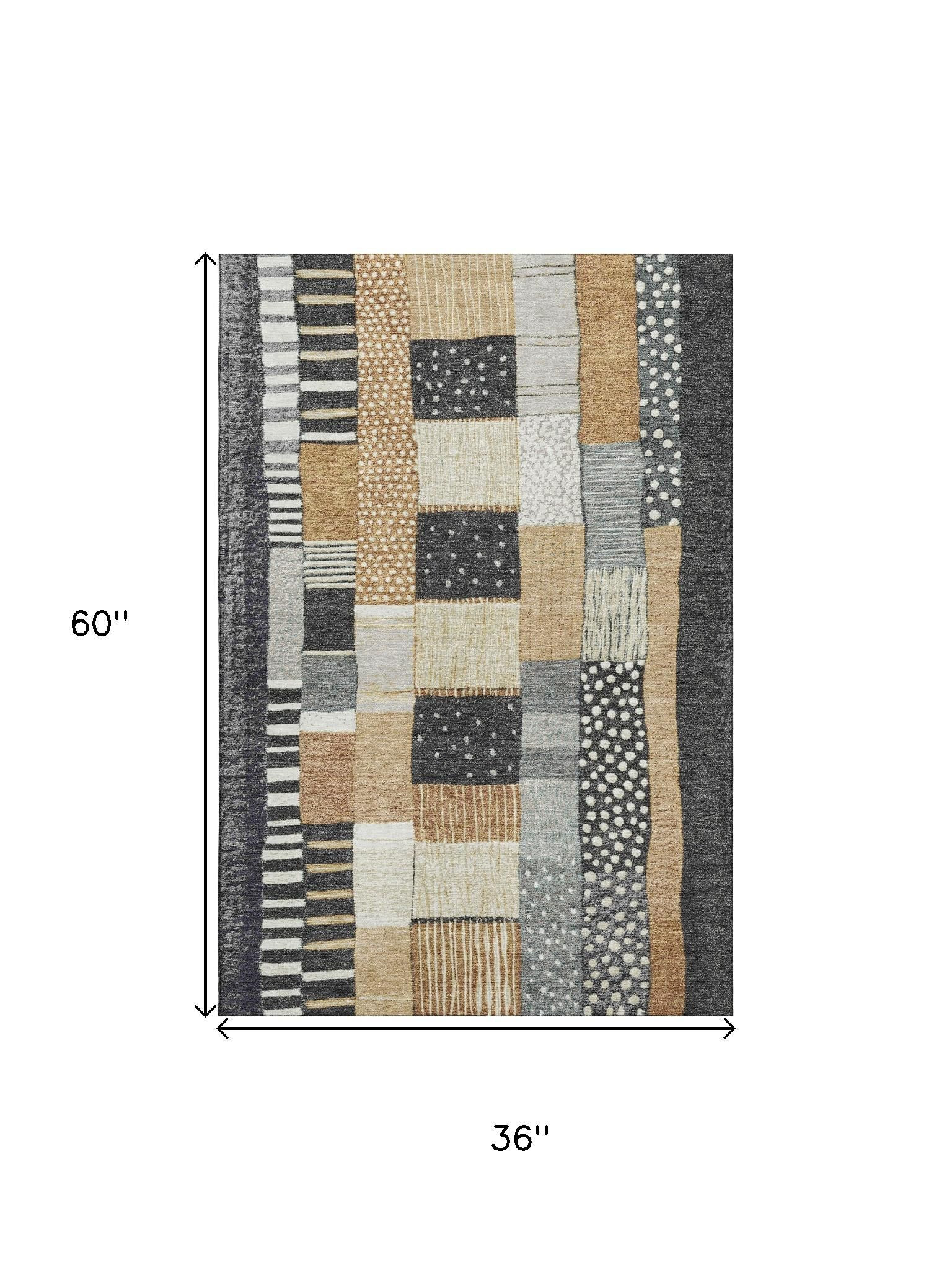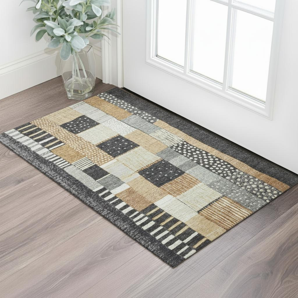 Add some artistry to your room with this 3-foot x 5-foot black gold and ivory geometric washable area rug with uv protection. Ideal for spaces with kids and pets, this rug is stain resistant to help repel dirt and spilled liquids. Built to last, this rug crafted from polyester fibers is known for its durability and long lasting appeal. Rugs are a great way to showcase your style, hide imperfections, warm your home and reduce noise. This smaller sized, transitional styled rug is just what you need for your walkway, bedside, in front of door, cabinet, refrigerator, or chair. 36.00-inch h x 60.00-inch w x 0.39-inch d.