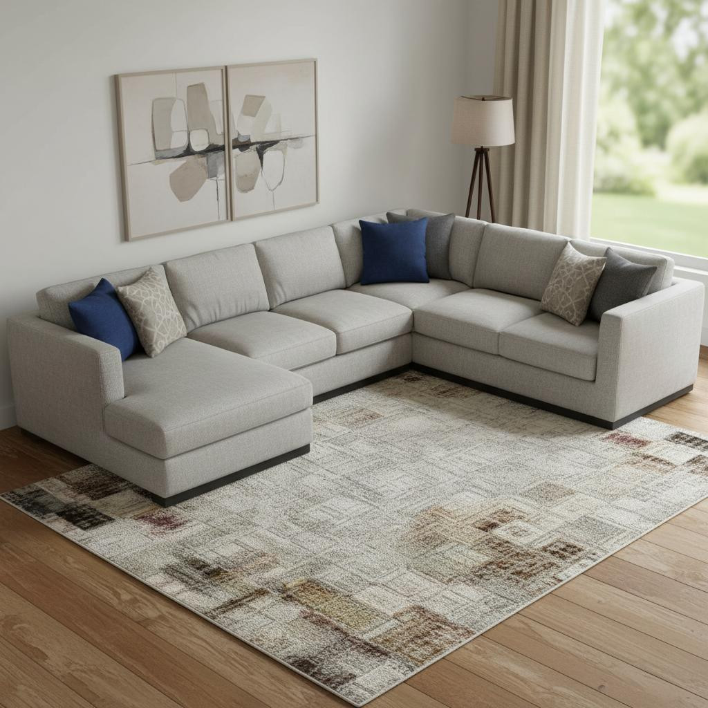 Set an inviting tone in your space with this 9-foot x 12-foot brown ivory and gray geometric washable area rug with uv protection. Ideal for spaces with kids and pets, this rug is stain resistant to help repel dirt and spilled liquids. Built to last, this rug crafted from polyester fibers is known for its durability and long lasting appeal. Rugs are a great way to showcase your style, hide imperfections, warm your home and reduce noise. This larger sized, transitional styled rug is ready to create a focal point or statement piece in your room. 108.00-inch h x 144.00-inch w x 0.39-inch d.