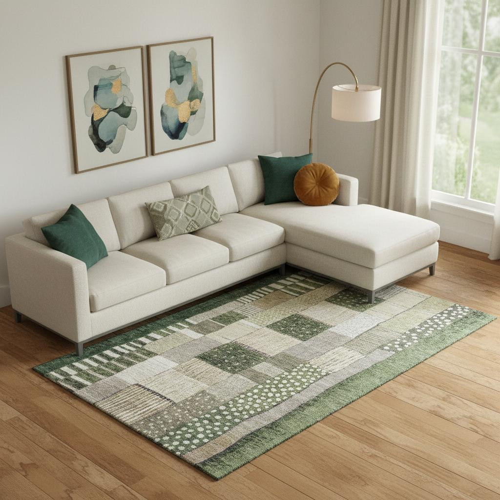 Add some artistry to your room with this 9-foot x 12-foot olive green beige and ivory geometric washable area rug with uv protection. Ideal for spaces with kids and pets, this rug is stain resistant to help repel dirt and spilled liquids. Built to last, this rug crafted from polyester fibers is known for its durability and long lasting appeal. Rugs are a great way to showcase your style, hide imperfections, warm your home and reduce noise. This larger sized, transitional styled rug is ready to create a focal point or statement piece in your room. 108.00-inch h x 144.00-inch w x 0.39-inch d.