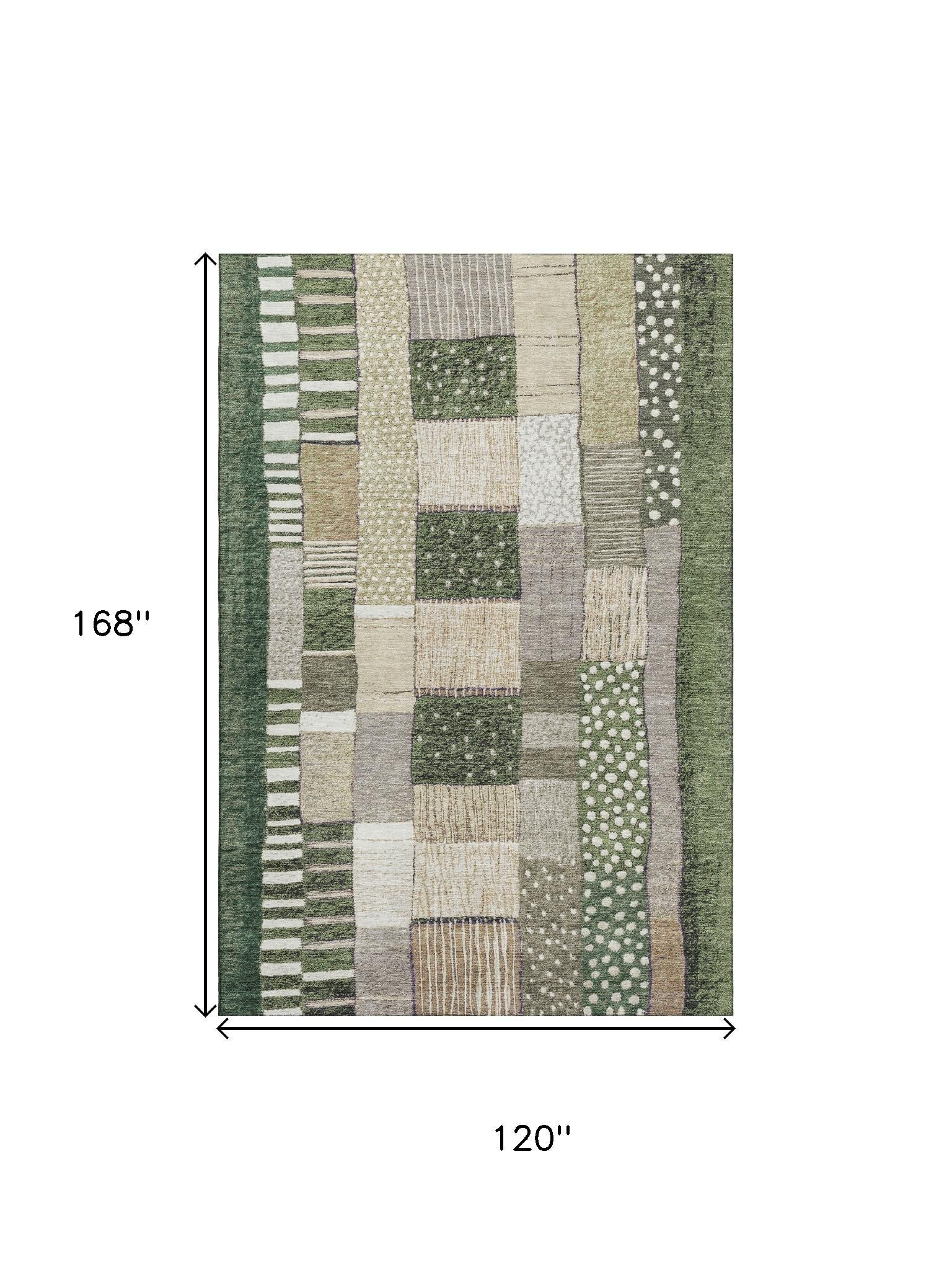 This 10-foot x 14-foot olive green beige and ivory geometric washable area rug with uv protection, is a great way to add warmth to a room. Ideal for spaces with kids and pets, this rug is stain resistant to help repel dirt and spilled liquids. Built to last, this rug crafted from polyester fibers is known for its durability and long lasting appeal. Rugs are a great way to showcase your style, hide imperfections, warm your home and reduce noise. This larger sized, transitional styled rug is ready to create a focal point or statement piece in your room. 120.00-inch h x 168.00-inch w x 0.39-inch d.