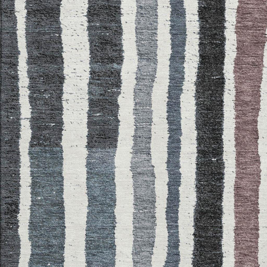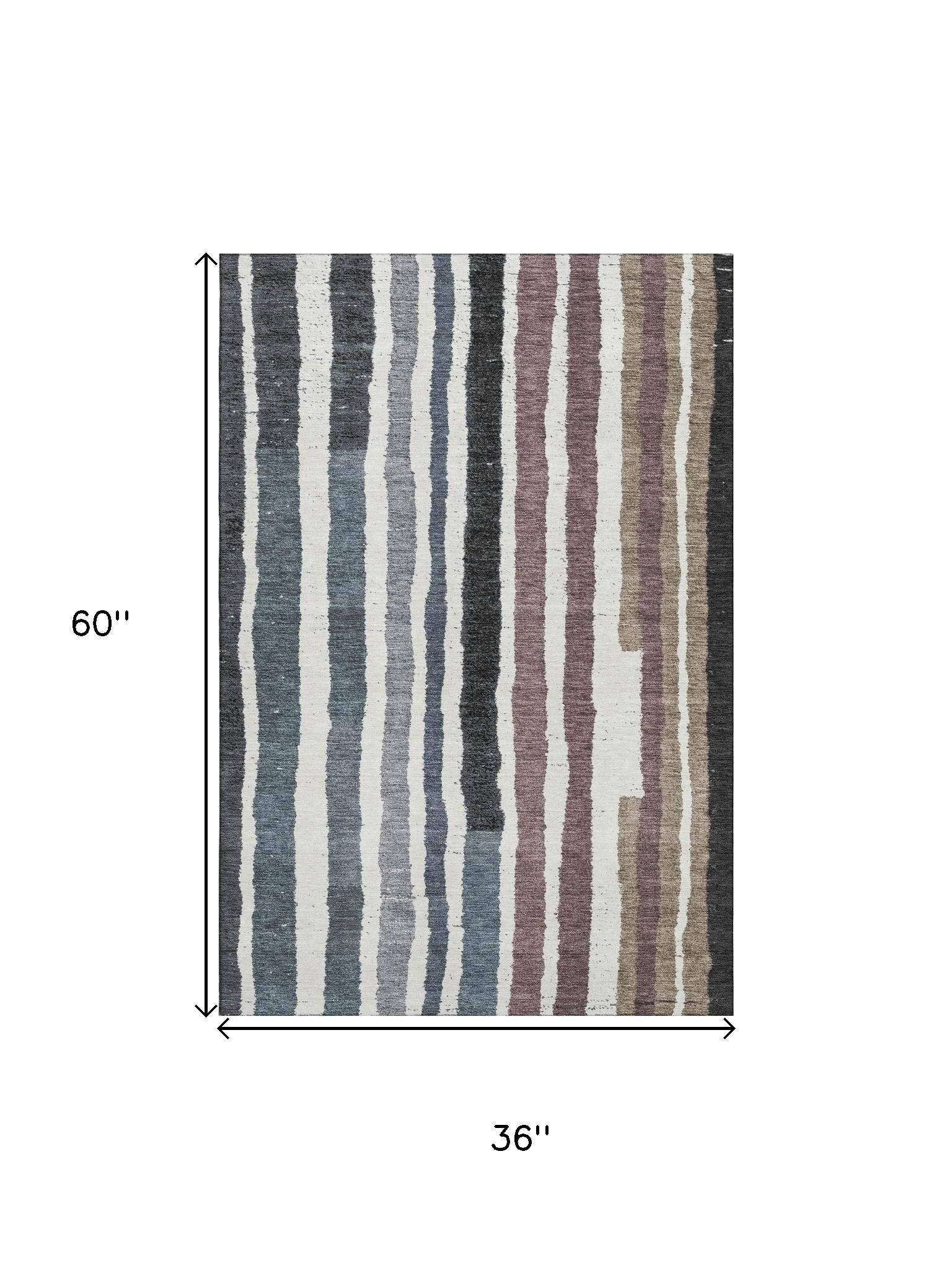 Add some artistry to your room with this 3-foot x 5-foot denim blue ivory and taupe striped washable area rug with uv protection. Ideal for spaces with kids and pets, this rug is stain resistant to help repel dirt and spilled liquids. Built to last, this rug crafted from polyester fibers is known for its durability and long lasting appeal. Rugs are a great way to showcase your style, hide imperfections, warm your home and reduce noise. This smaller sized, transitional styled rug is just what you need for your walkway, bedside, in front of door, cabinet, refrigerator, or chair. 36.00-inch h x 60.00-inch w x 0.39-inch d.