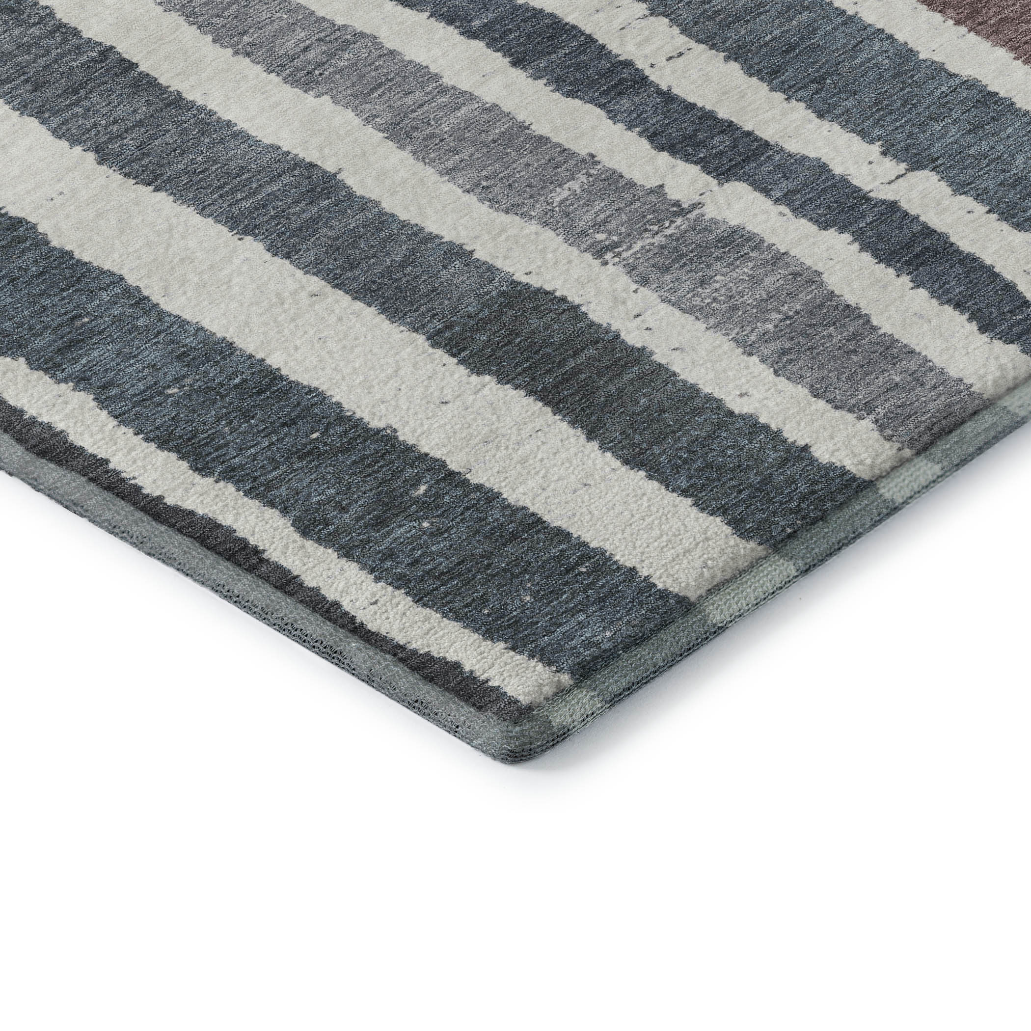 This 9-foot x 12-foot denim blue ivory and taupe striped washable area rug with uv protection, is a great way to add warmth to a room. Ideal for spaces with kids and pets, this rug is stain resistant to help repel dirt and spilled liquids. Built to last, this rug crafted from polyester fibers is known for its durability and long lasting appeal. Rugs are a great way to showcase your style, hide imperfections, warm your home and reduce noise. This larger sized, transitional styled rug is ready to create a focal point or statement piece in your room. 108.00-inch h x 144.00-inch w x 0.39-inch d.