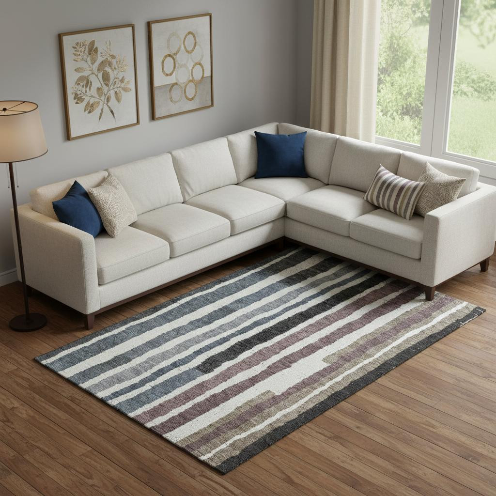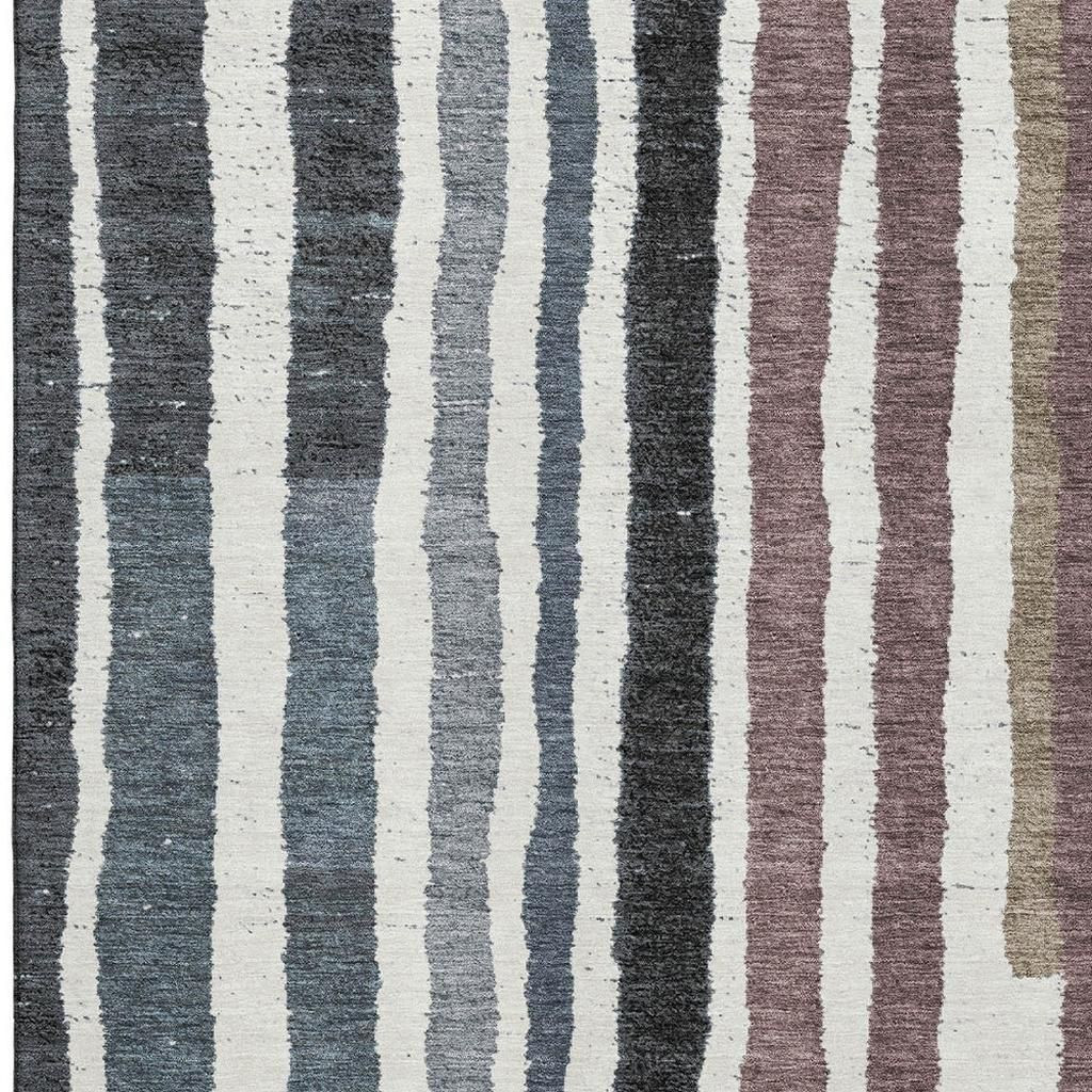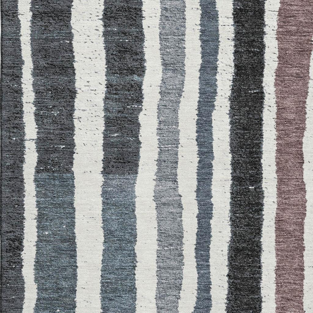 Add great coloration and comfortable texture to your space with this 10-foot x 14-foot denim blue ivory and taupe striped washable area rug with uv protection. Ideal for spaces with kids and pets, this rug is stain resistant to help repel dirt and spilled liquids. Built to last, this rug crafted from polyester fibers is known for its durability and long lasting appeal. Rugs are a great way to showcase your style, hide imperfections, warm your home and reduce noise. This larger sized, transitional styled rug is ready to create a focal point or statement piece in your room. 120.00-inch h x 168.00-inch w x 0.39-inch d.