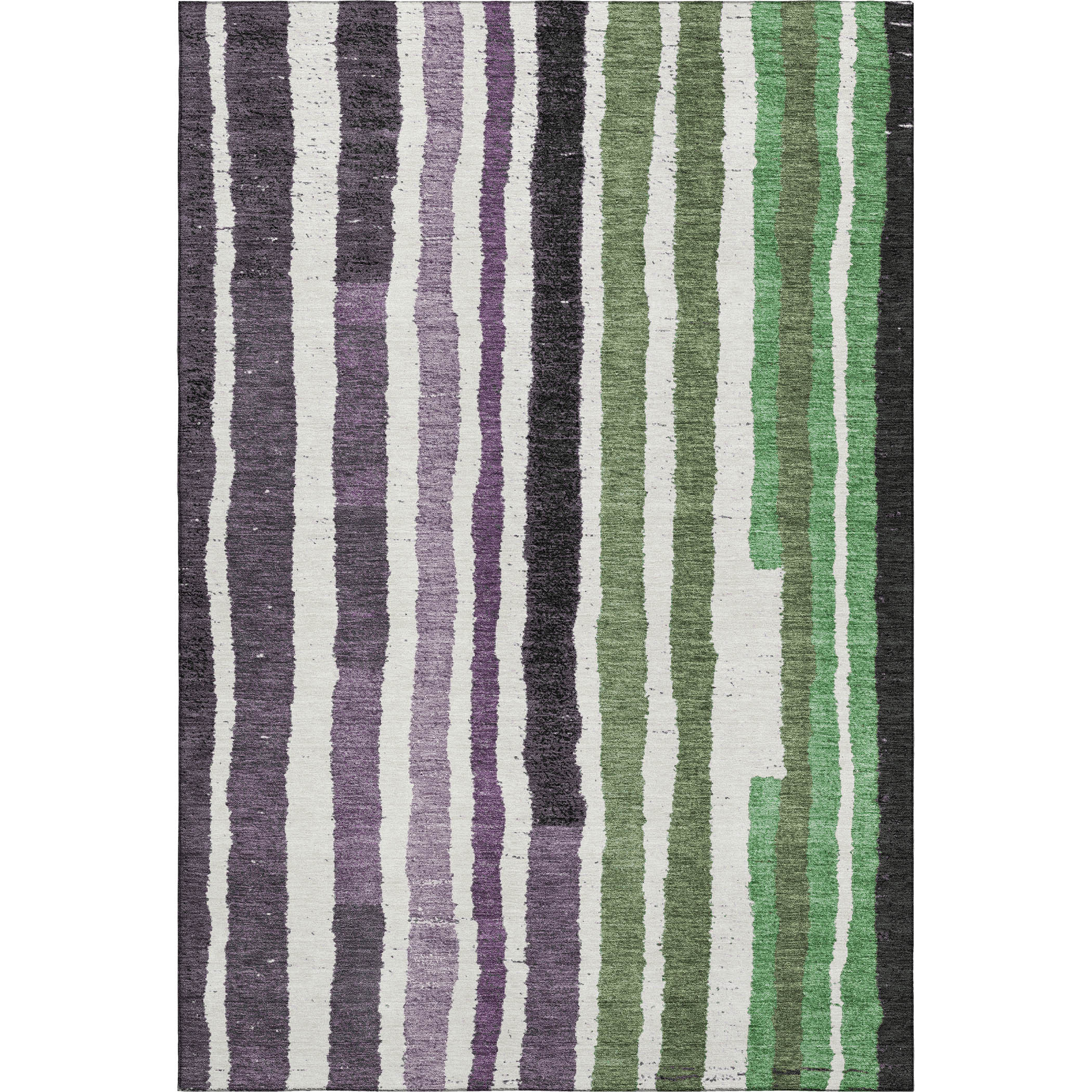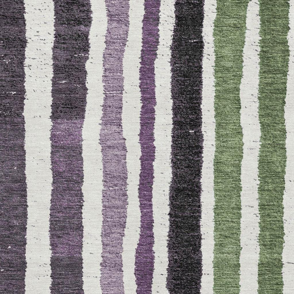 Add some artistry to your room with this 5-foot x 8-foot purple green and ivory striped washable area rug with uv protection. Ideal for spaces with kids and pets, this rug is stain resistant to help repel dirt and spilled liquids. Built to last, this rug crafted from polyester fibers is known for its durability and long lasting appeal. Rugs are a great way to showcase your style, hide imperfections, warm your home and reduce noise. This larger sized, transitional styled rug is ready to create a focal point or statement piece in your room. 60.00-inch h x 90.00-inch w x 0.39-inch d.