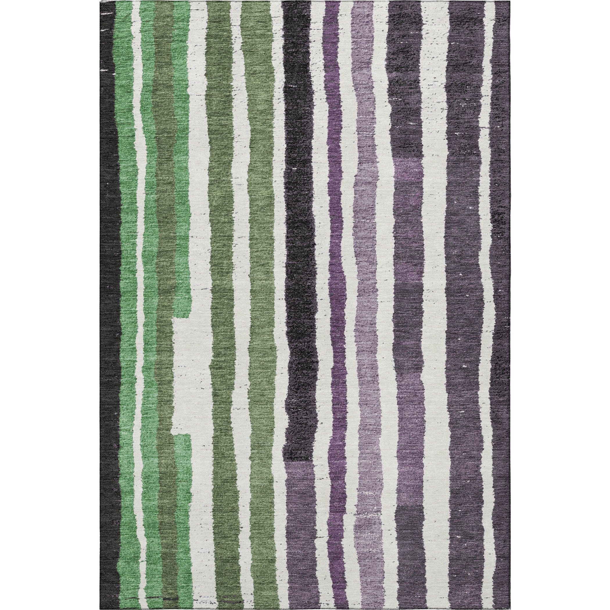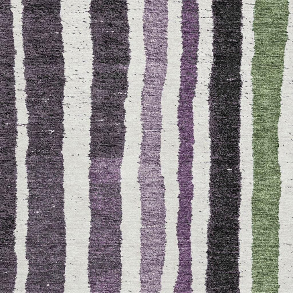 Add some artistry to your room with this 8-foot x 10-foot purple green and ivory striped washable area rug with uv protection. Ideal for spaces with kids and pets, this rug is stain resistant to help repel dirt and spilled liquids. Built to last, this rug crafted from polyester fibers is known for its durability and long lasting appeal. Rugs are a great way to showcase your style, hide imperfections, warm your home and reduce noise. This larger sized, transitional styled rug is ready to create a focal point or statement piece in your room. 96.00-inch h x 120.00-inch w x 0.39-inch d.