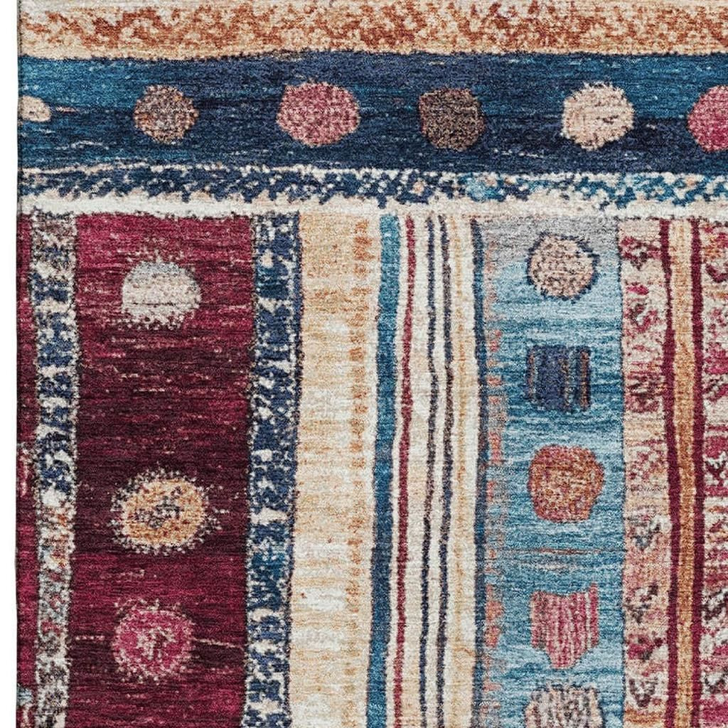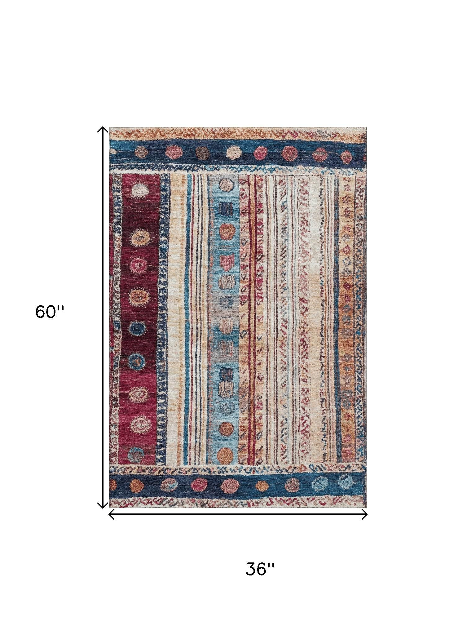 Add great coloration and comfortable texture to your space with this 3-foot x 5-foot navy blue merlot and ivory striped washable area rug with uv protection. Ideal for spaces with kids and pets, this rug is stain resistant to help repel dirt and spilled liquids. Built to last, this rug crafted from polyester fibers is known for its durability and long lasting appeal. Rugs are a great way to showcase your style, hide imperfections, warm your home and reduce noise. This smaller sized, transitional styled rug is just what you need for your walkway, bedside, in front of door, cabinet, refrigerator, or chair. 36.00-inch h x 60.00-inch w x 0.39-inch d.