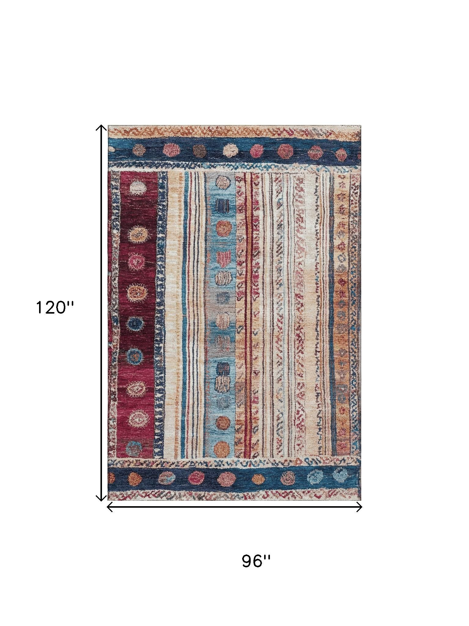 Set an inviting tone in your space with this 8-foot x 10-foot navy blue merlot and ivory striped washable area rug with uv protection. Ideal for spaces with kids and pets, this rug is stain resistant to help repel dirt and spilled liquids. Built to last, this rug crafted from polyester fibers is known for its durability and long lasting appeal. Rugs are a great way to showcase your style, hide imperfections, warm your home and reduce noise. This larger sized, transitional styled rug is ready to create a focal point or statement piece in your room. 96.00-inch h x 120.00-inch w x 0.39-inch d.