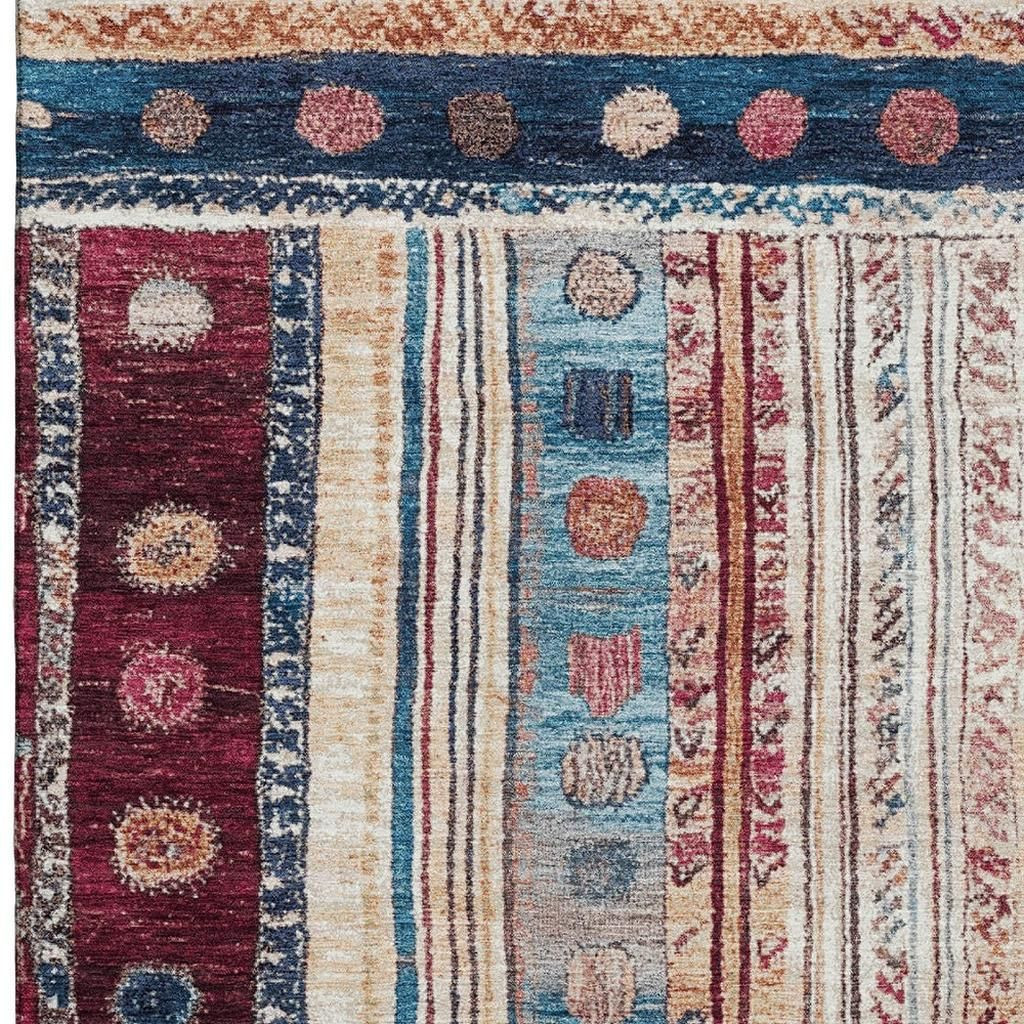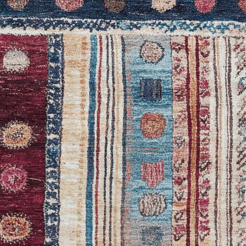 This 9-foot x 12-foot navy blue merlot and ivory striped washable area rug with uv protection, is a great way to add warmth to a room. Ideal for spaces with kids and pets, this rug is stain resistant to help repel dirt and spilled liquids. Built to last, this rug crafted from polyester fibers is known for its durability and long lasting appeal. Rugs are a great way to showcase your style, hide imperfections, warm your home and reduce noise. This larger sized, transitional styled rug is ready to create a focal point or statement piece in your room. 108.00-inch h x 144.00-inch w x 0.39-inch d.