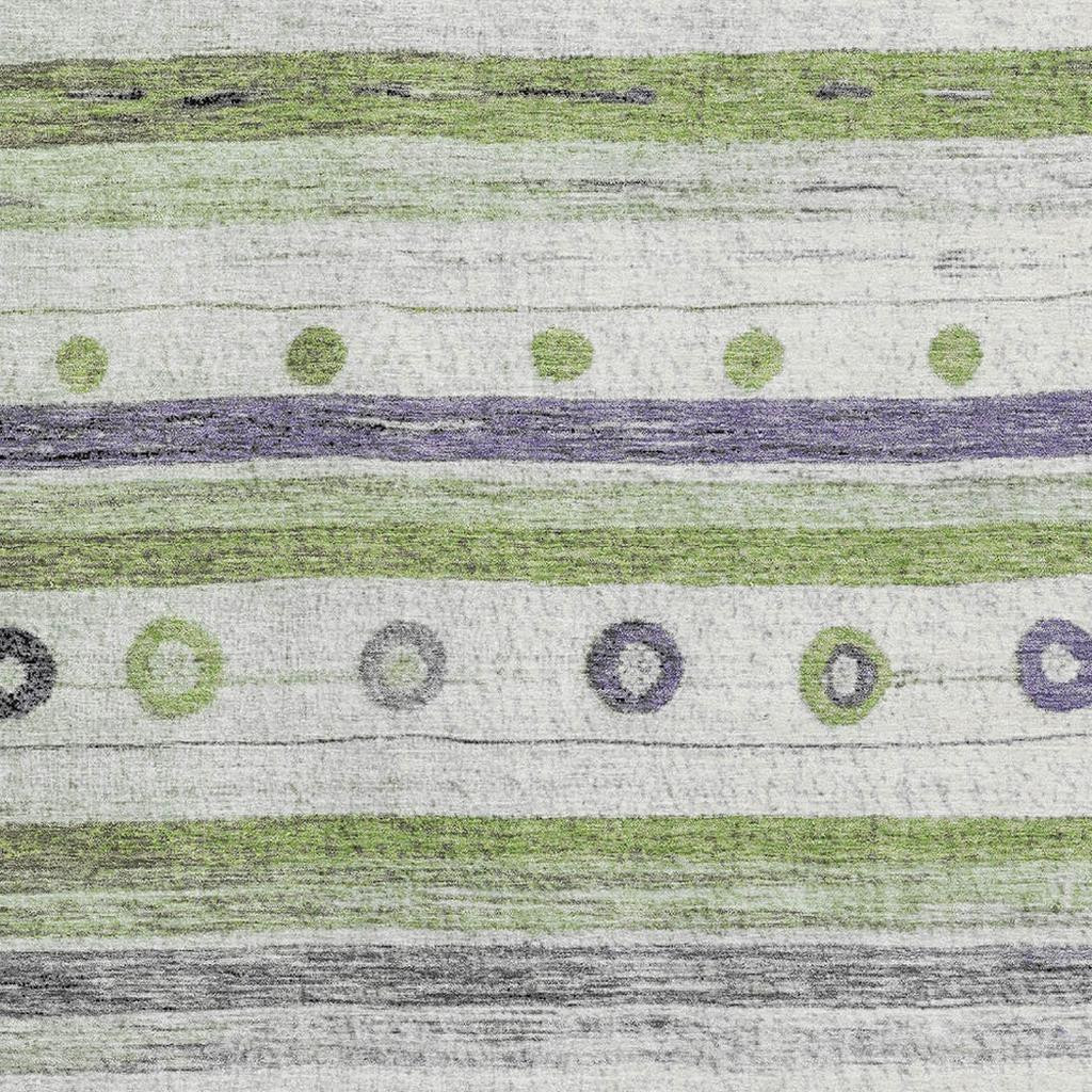 Set an inviting tone in your space with this 10-foot x 14-foot artichoke green purple and ivory striped washable area rug with uv protection. Ideal for spaces with kids and pets, this rug is stain resistant to help repel dirt and spilled liquids. Built to last, this rug crafted from polyester fibers is known for its durability and long lasting appeal. Rugs are a great way to showcase your style, hide imperfections, warm your home and reduce noise. This larger sized, transitional styled rug is ready to create a focal point or statement piece in your room. 120.00-inch h x 168.00-inch w x 0.39-inch d.