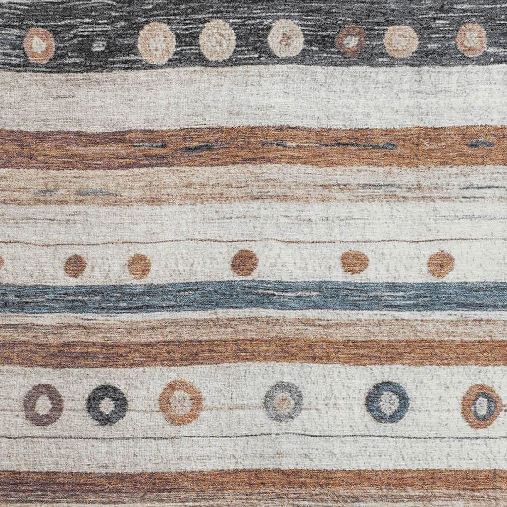 This 5-foot x 8-foot copper ivory and denim blue striped washable area rug with uv protection, is a great way to add warmth to a room. Ideal for spaces with kids and pets, this rug is stain resistant to help repel dirt and spilled liquids. Built to last, this rug crafted from polyester fibers is known for its durability and long lasting appeal. Rugs are a great way to showcase your style, hide imperfections, warm your home and reduce noise. This larger sized, transitional styled rug is ready to create a focal point or statement piece in your room. 60.00-inch h x 90.00-inch w x 0.39-inch d.