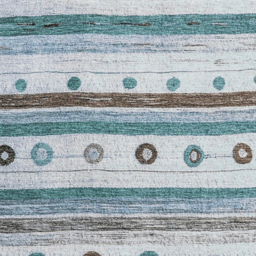 Set an inviting tone in your space with this 3-foot x 5-foot teal brown and ivory striped washable area rug with uv protection. Ideal for spaces with kids and pets, this rug is stain resistant to help repel dirt and spilled liquids. Built to last, this rug crafted from polyester fibers is known for its durability and long lasting appeal. Rugs are a great way to showcase your style, hide imperfections, warm your home and reduce noise. This smaller sized, transitional styled rug is just what you need for your walkway, bedside, in front of door, cabinet, refrigerator, or chair. 36.00-inch h x 60.00-inch w x 0.39-inch d.