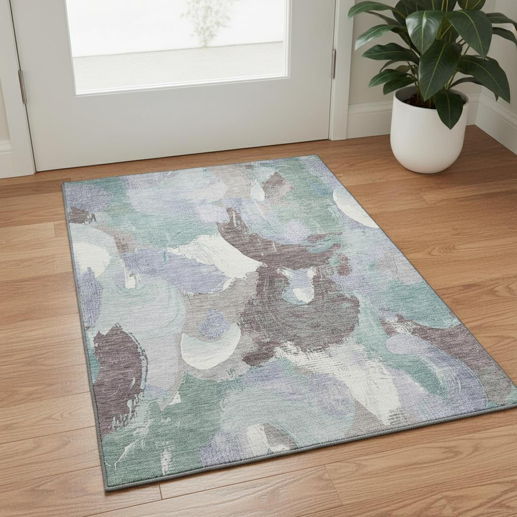 This 3-foot x 5-foot pale aqua brown and ivory abstract washable area rug with uv protection, is a great way to add warmth to a room. Ideal for spaces with kids and pets, this rug is stain resistant to help repel dirt and spilled liquids. Built to last, this rug crafted from polyester fibers is known for its durability and long lasting appeal. Rugs are a great way to showcase your style, hide imperfections, warm your home and reduce noise. This smaller sized, transitional styled rug is just what you need for your walkway, bedside, in front of door, cabinet, refrigerator, or chair. 36.00-inch h x 60.00-inch w x 0.39-inch d.