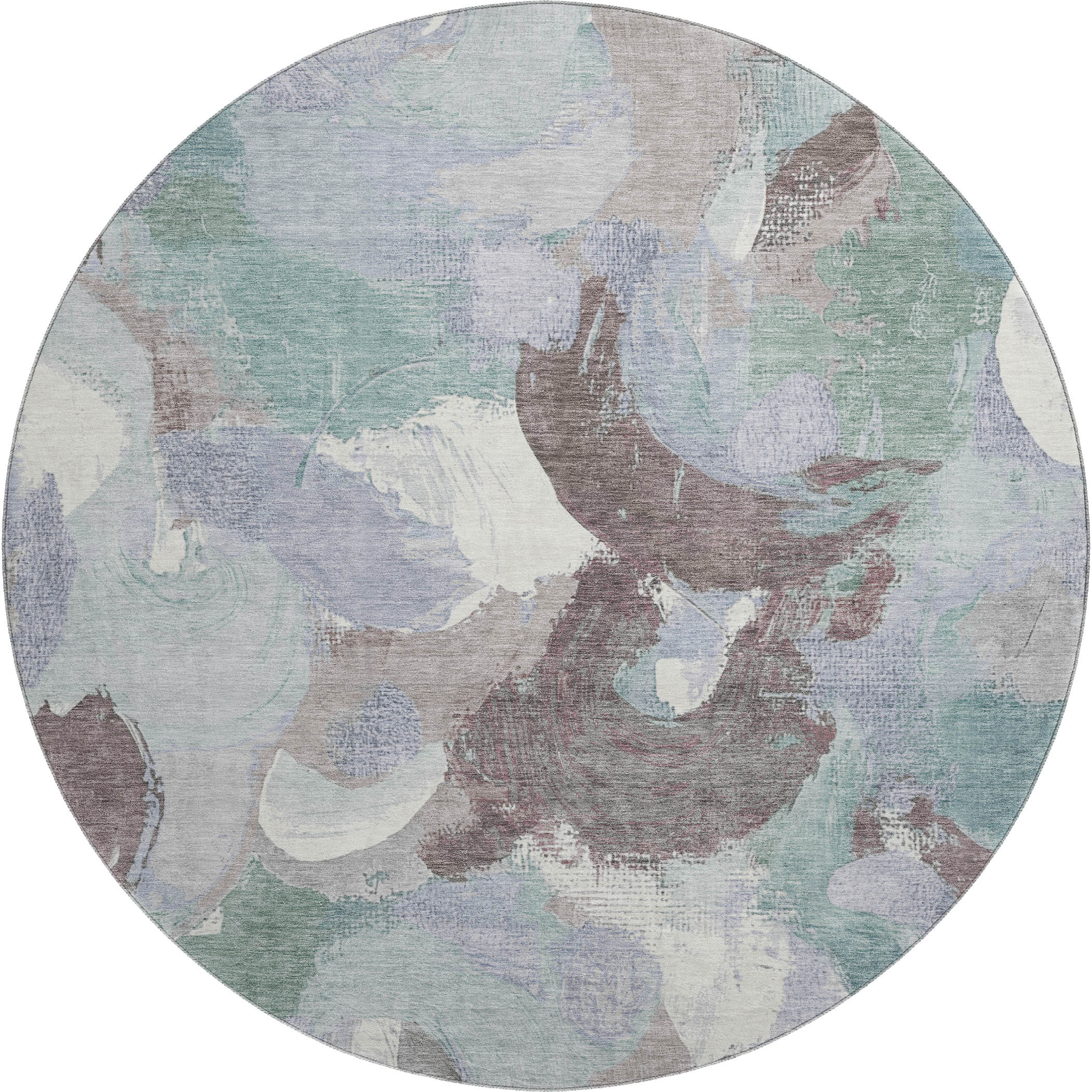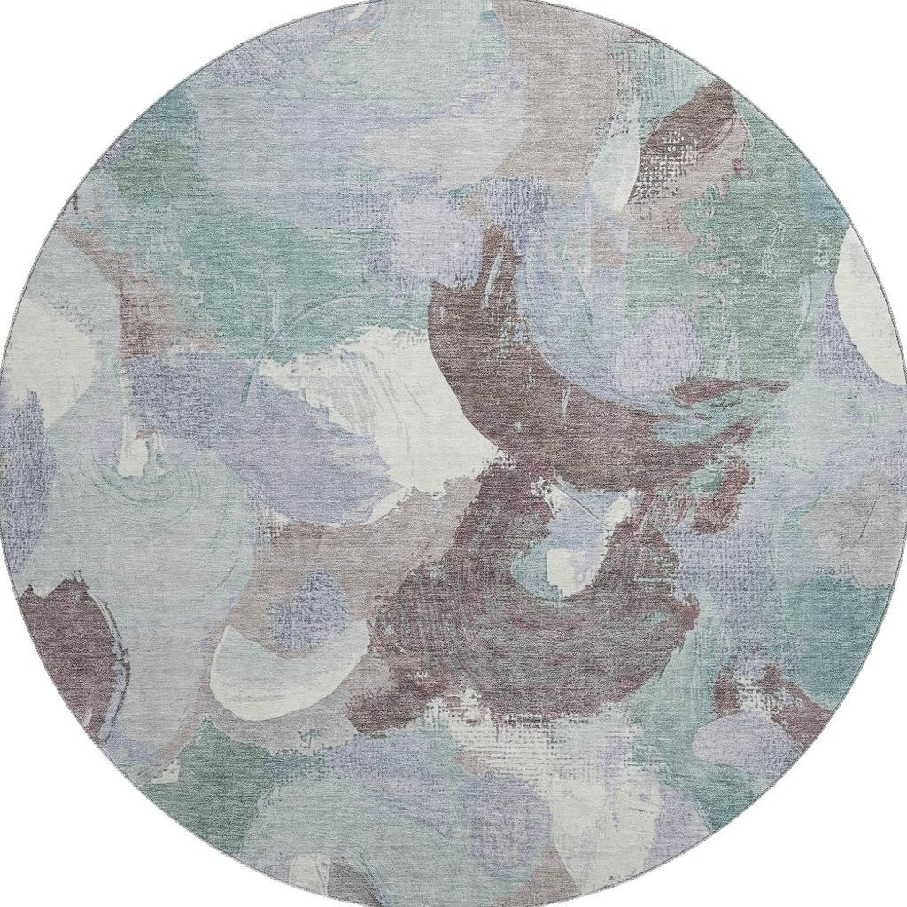 Add great coloration and comfortable texture to your space with this 8-foot pale aqua brown and ivory abstract washable round rug with uv protection. Ideal for spaces with kids and pets, this rug is stain resistant to help repel dirt and spilled liquids. Built to last, this rug crafted from polyester fibers is known for its durability and long lasting appeal. Rugs are a great way to showcase your style, hide imperfections, warm your home and reduce noise. This larger sized, transitional styled rug is ready to create a focal point or statement piece in your room. 96.00-inch h x 96.00-inch w x 0.39-inch d.