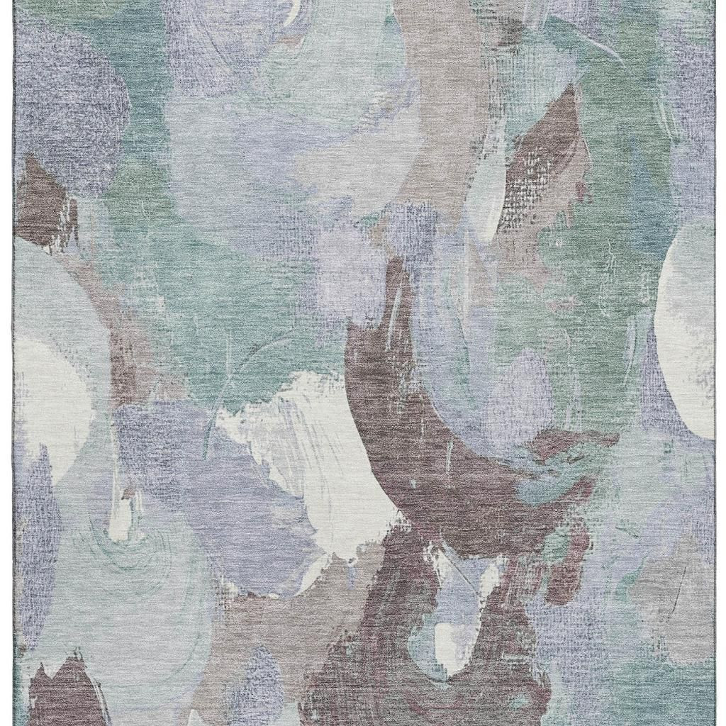 Add some artistry to your room with this 9-foot x 12-foot pale aqua brown and ivory abstract washable area rug with uv protection. Ideal for spaces with kids and pets, this rug is stain resistant to help repel dirt and spilled liquids. Built to last, this rug crafted from polyester fibers is known for its durability and long lasting appeal. Rugs are a great way to showcase your style, hide imperfections, warm your home and reduce noise. This larger sized, transitional styled rug is ready to create a focal point or statement piece in your room. 108.00-inch h x 144.00-inch w x 0.39-inch d.