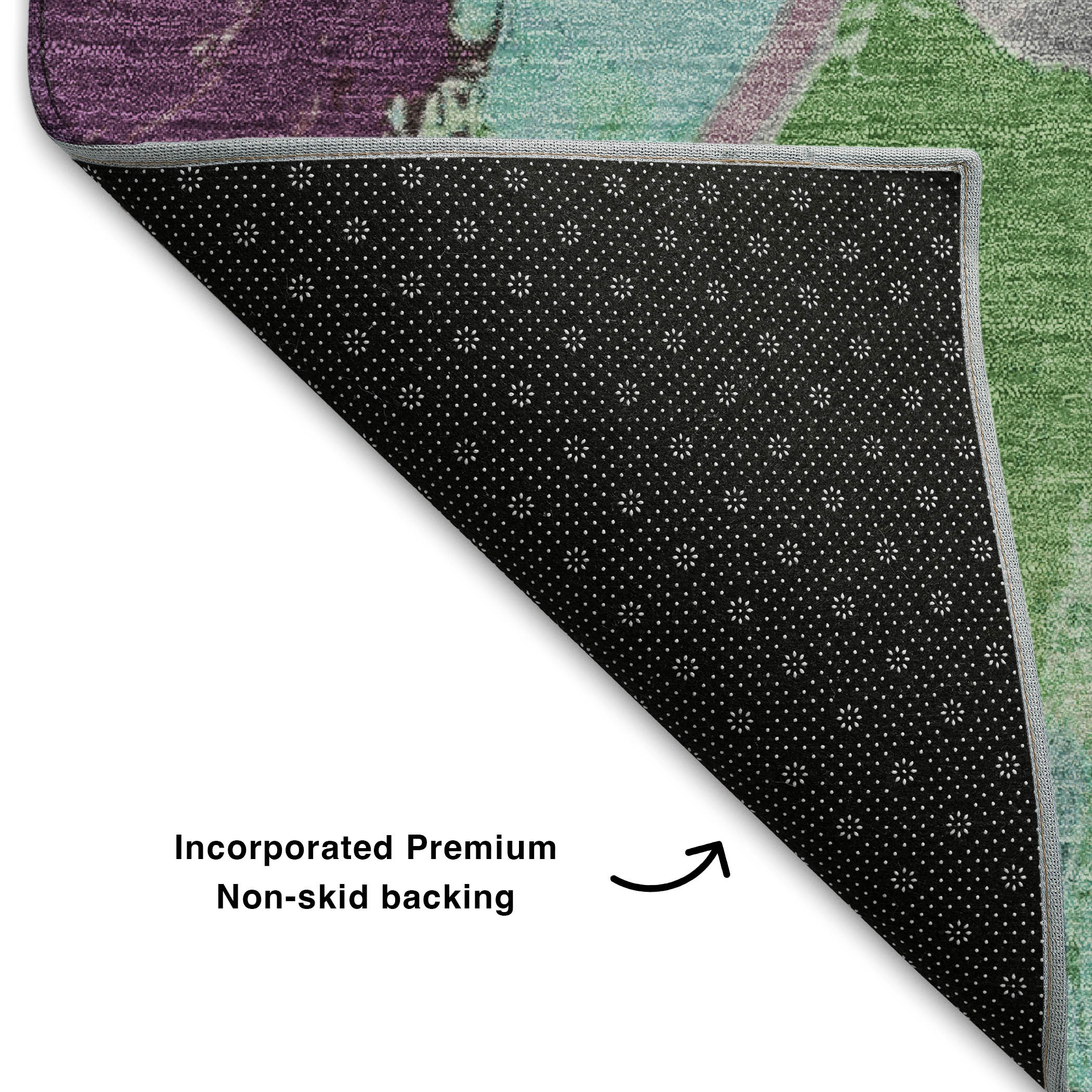 Add great coloration and comfortable texture to your space with this 8-foot x 10-foot teal purple and green abstract washable area rug with uv protection. Ideal for spaces with kids and pets, this rug is stain resistant to help repel dirt and spilled liquids. Built to last, this rug crafted from polyester fibers is known for its durability and long lasting appeal. Rugs are a great way to showcase your style, hide imperfections, warm your home and reduce noise. This larger sized, transitional styled rug is ready to create a focal point or statement piece in your room. 96.00-inch h x 120.00-inch w x 0.39-inch d.