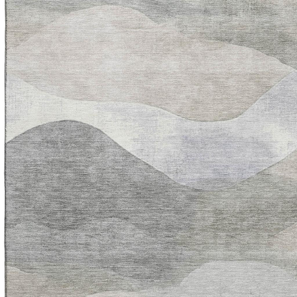 This 3-foot x 5-foot beige gray and ivory abstract washable area rug with uv protection, is a great way to add warmth to a room. Ideal for spaces with kids and pets, this rug is stain resistant to help repel dirt and spilled liquids. Built to last, this rug crafted from polyester fibers is known for its durability and long lasting appeal. Rugs are a great way to showcase your style, hide imperfections, warm your home and reduce noise. This smaller sized, transitional styled rug is just what you need for your walkway, bedside, in front of door, cabinet, refrigerator, or chair. 36.00-inch h x 60.00-inch w x 0.39-inch d.
