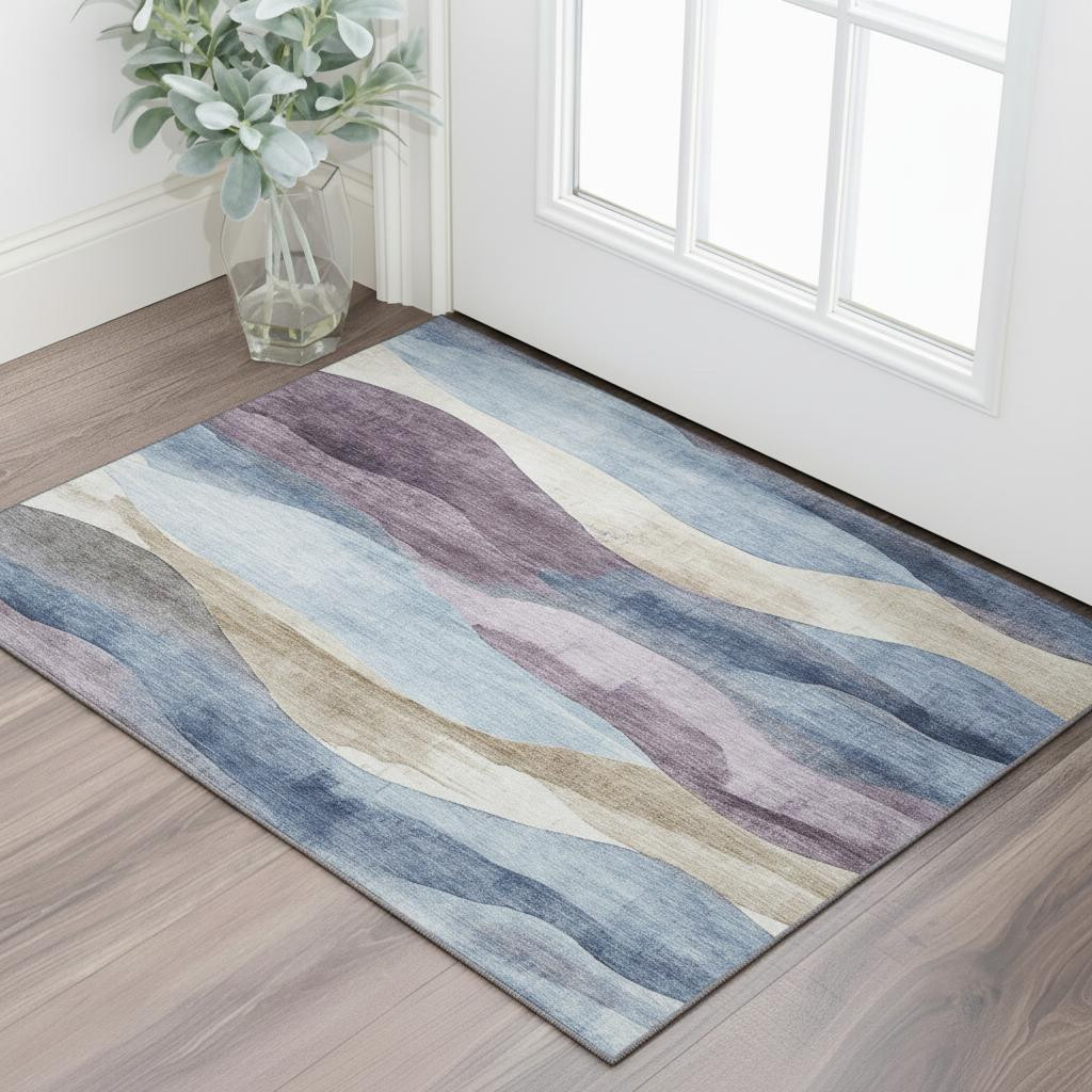 This 3-foot x 5-foot denim blue beige and eggplant abstract washable area rug with uv protection, is a great way to add warmth to a room. Ideal for spaces with kids and pets, this rug is stain resistant to help repel dirt and spilled liquids. Built to last, this rug crafted from polyester fibers is known for its durability and long lasting appeal. Rugs are a great way to showcase your style, hide imperfections, warm your home and reduce noise. This smaller sized, transitional styled rug is just what you need for your walkway, bedside, in front of door, cabinet, refrigerator, or chair. 36.00-inch h x 60.00-inch w x 0.39-inch d.