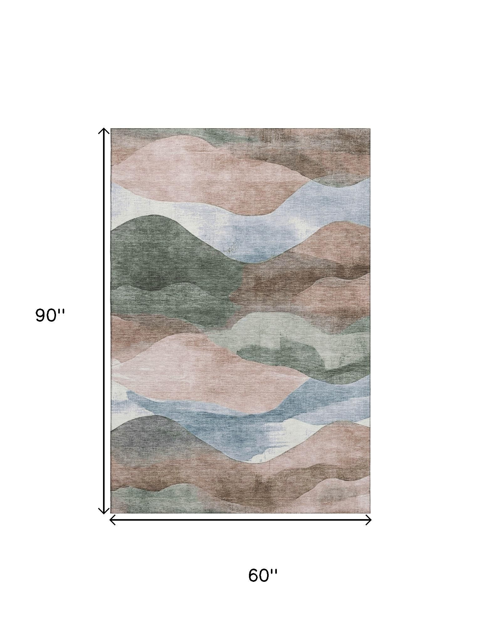Set an inviting tone in your space with this 5-foot x 8-foot salmon emerald and ivory abstract washable area rug with uv protection. Ideal for spaces with kids and pets, this rug is stain resistant to help repel dirt and spilled liquids. Built to last, this rug crafted from polyester fibers is known for its durability and long lasting appeal. Rugs are a great way to showcase your style, hide imperfections, warm your home and reduce noise. This larger sized, transitional styled rug is ready to create a focal point or statement piece in your room. 60.00-inch h x 90.00-inch w x 0.39-inch d.