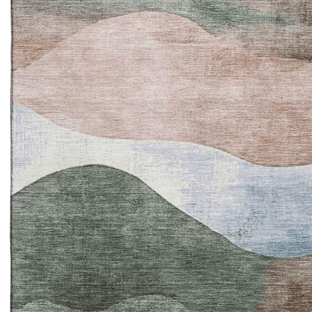 This 8-foot x 10-foot salmon emerald and ivory abstract washable area rug with uv protection, is a great way to add warmth to a room. Ideal for spaces with kids and pets, this rug is stain resistant to help repel dirt and spilled liquids. Built to last, this rug crafted from polyester fibers is known for its durability and long lasting appeal. Rugs are a great way to showcase your style, hide imperfections, warm your home and reduce noise. This larger sized, transitional styled rug is ready to create a focal point or statement piece in your room. 96.00-inch h x 120.00-inch w x 0.39-inch d.