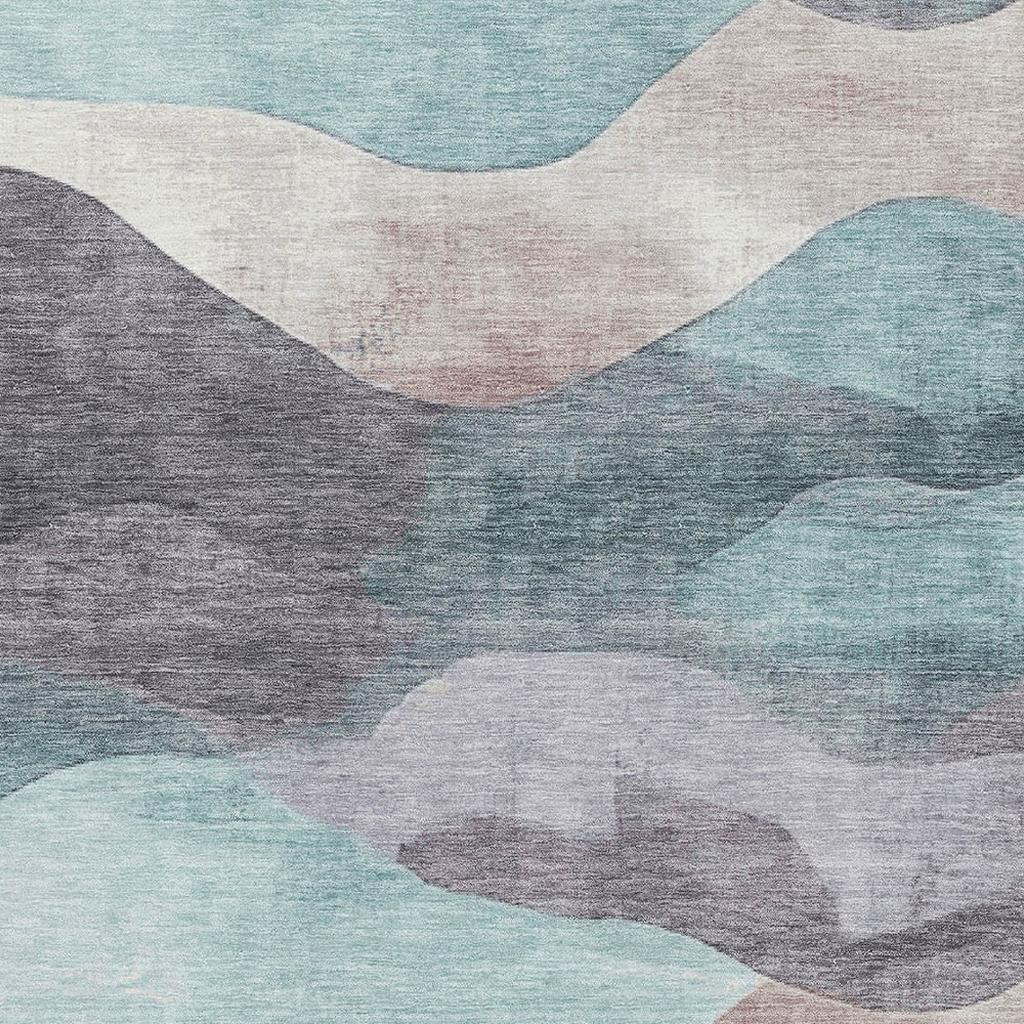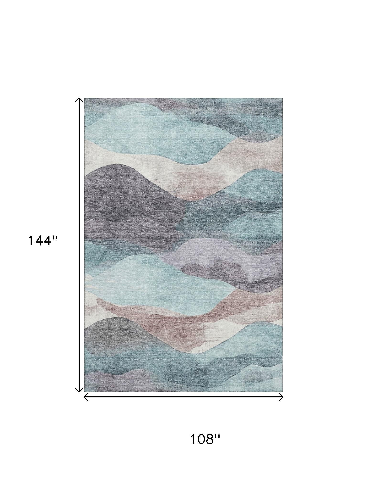 Add some artistry to your room with this 9-foot x 12-foot teal beige and ivory abstract washable area rug with uv protection. Ideal for spaces with kids and pets, this rug is stain resistant to help repel dirt and spilled liquids. Built to last, this rug crafted from polyester fibers is known for its durability and long lasting appeal. Rugs are a great way to showcase your style, hide imperfections, warm your home and reduce noise. This larger sized, transitional styled rug is ready to create a focal point or statement piece in your room. 108.00-inch h x 144.00-inch w x 0.39-inch d.