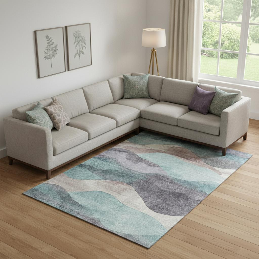 Set an inviting tone in your space with this 10-foot x 14-foot teal beige and ivory abstract washable area rug with uv protection. Ideal for spaces with kids and pets, this rug is stain resistant to help repel dirt and spilled liquids. Built to last, this rug crafted from polyester fibers is known for its durability and long lasting appeal. Rugs are a great way to showcase your style, hide imperfections, warm your home and reduce noise. This larger sized, transitional styled rug is ready to create a focal point or statement piece in your room. 120.00-inch h x 168.00-inch w x 0.39-inch d.