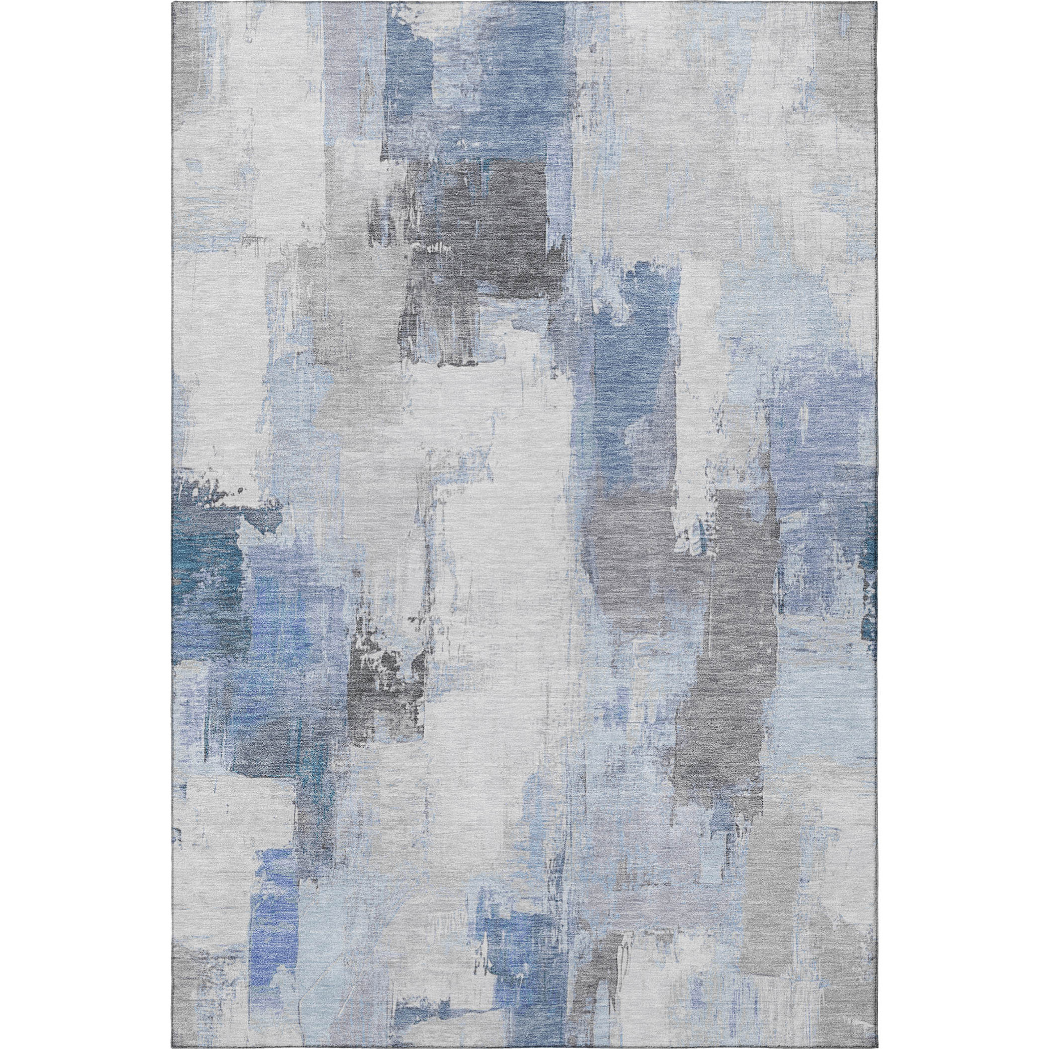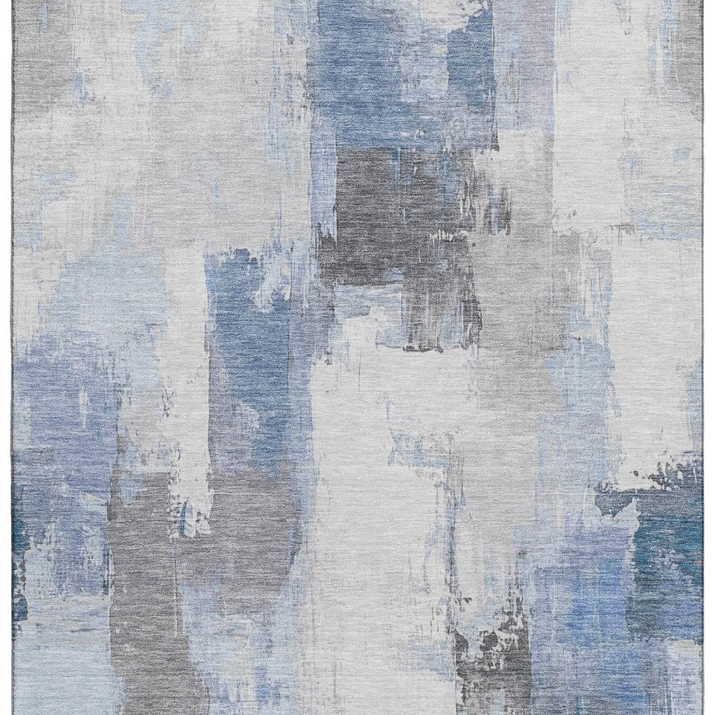 Set an inviting tone in your space with this 5-foot x 8-foot denim blue gray and ivory abstract washable area rug with uv protection. Ideal for spaces with kids and pets, this rug is stain resistant to help repel dirt and spilled liquids. Built to last, this rug crafted from polyester fibers is known for its durability and long lasting appeal. Rugs are a great way to showcase your style, hide imperfections, warm your home and reduce noise. This larger sized, transitional styled rug is ready to create a focal point or statement piece in your room. 60.00-inch h x 90.00-inch w x 0.39-inch d.