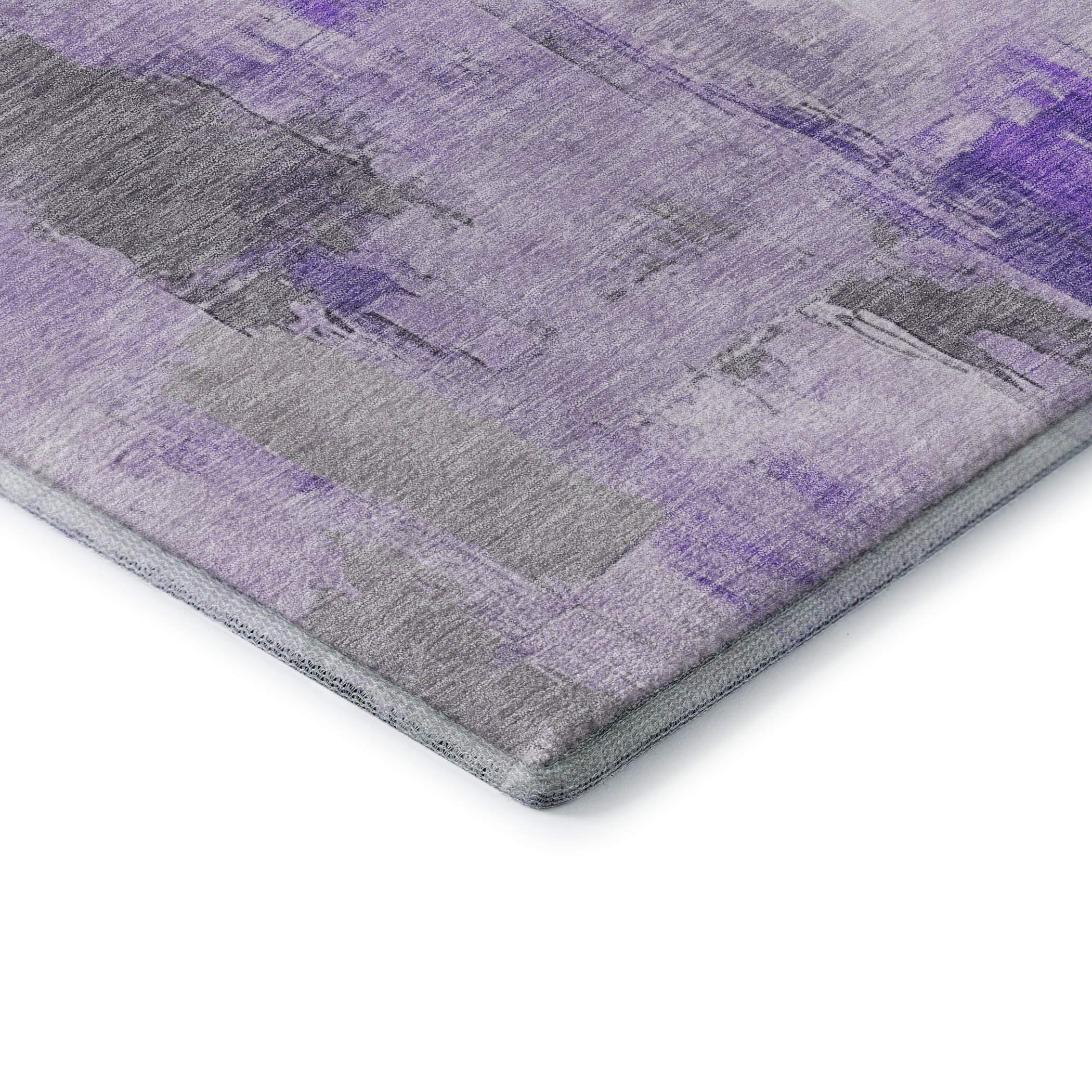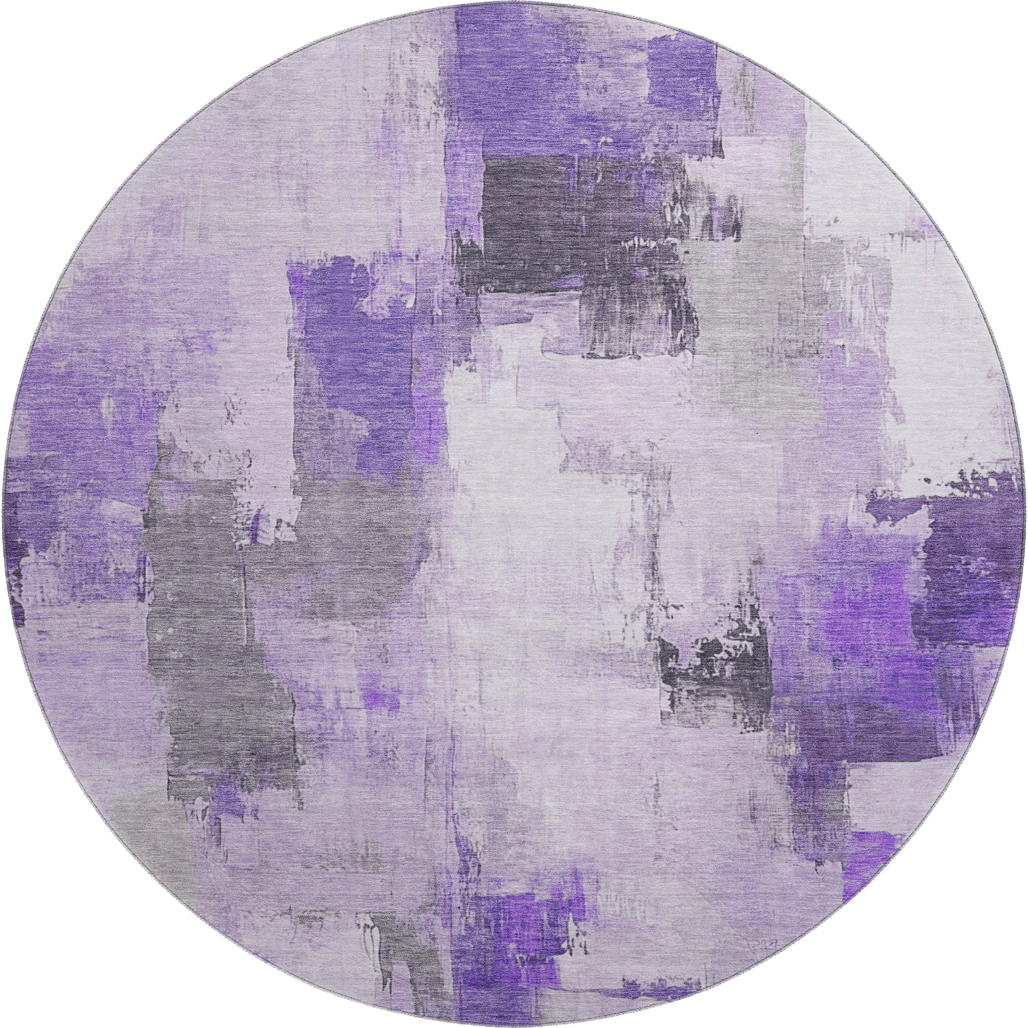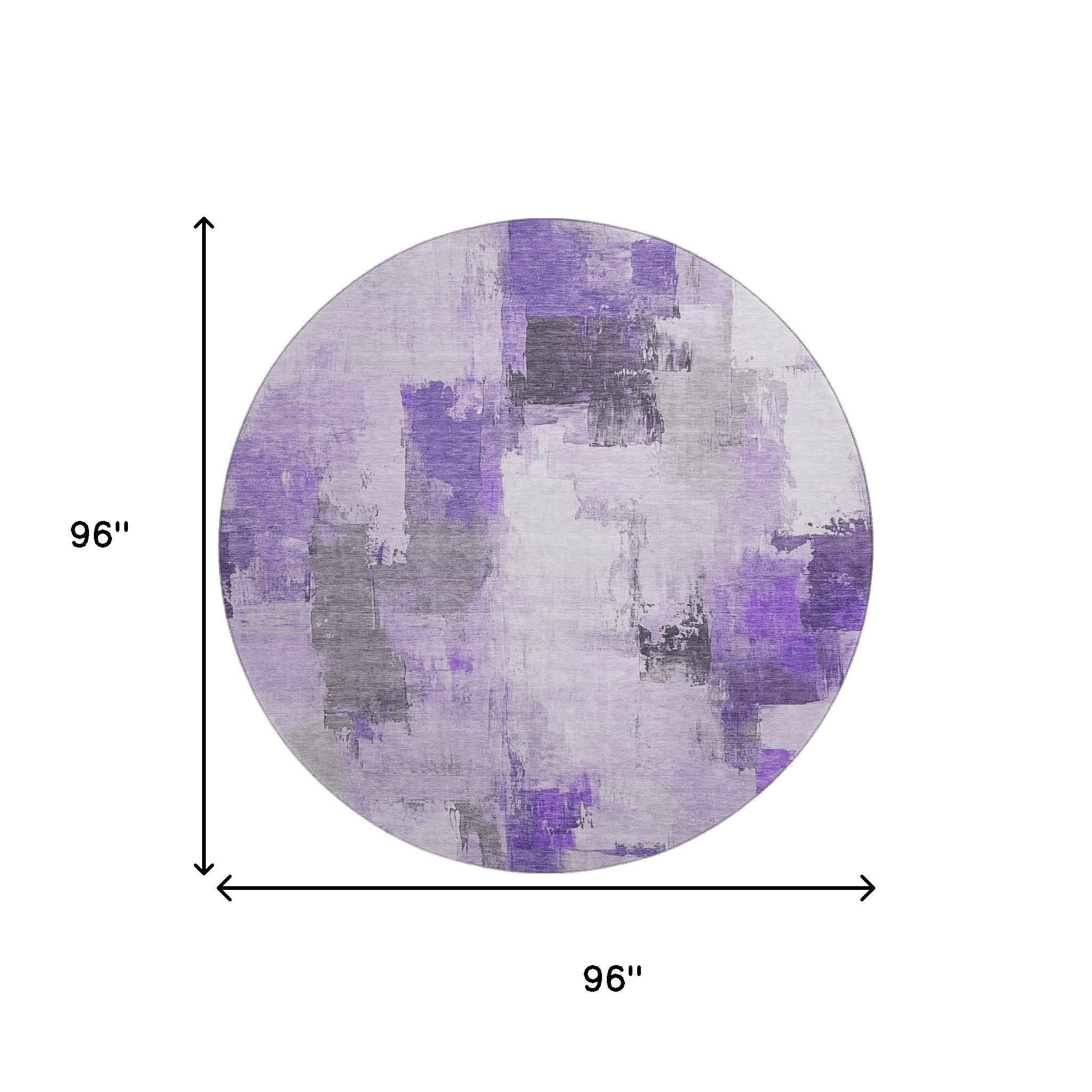 This 8-foot lavender gray and ivory abstract washable round rug with uv protection, is a great way to add warmth to a room. Ideal for spaces with kids and pets, this rug is stain resistant to help repel dirt and spilled liquids. Built to last, this rug crafted from polyester fibers is known for its durability and long lasting appeal. Rugs are a great way to showcase your style, hide imperfections, warm your home and reduce noise. This larger sized, transitional styled rug is ready to create a focal point or statement piece in your room. 96.00-inch h x 96.00-inch w x 0.39-inch d.