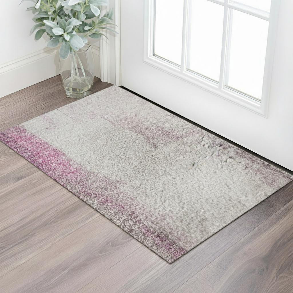 Set an inviting tone in your space with this 3-foot x 5-foot pink gray and ivory abstract washable area rug with uv protection. Ideal for spaces with kids and pets, this rug is stain resistant to help repel dirt and spilled liquids. Built to last, this rug crafted from polyester fibers is known for its durability and long lasting appeal. Rugs are a great way to showcase your style, hide imperfections, warm your home and reduce noise. This smaller sized, transitional styled rug is just what you need for your walkway, bedside, in front of door, cabinet, refrigerator, or chair. 36.00-inch h x 60.00-inch w x 0.39-inch d.