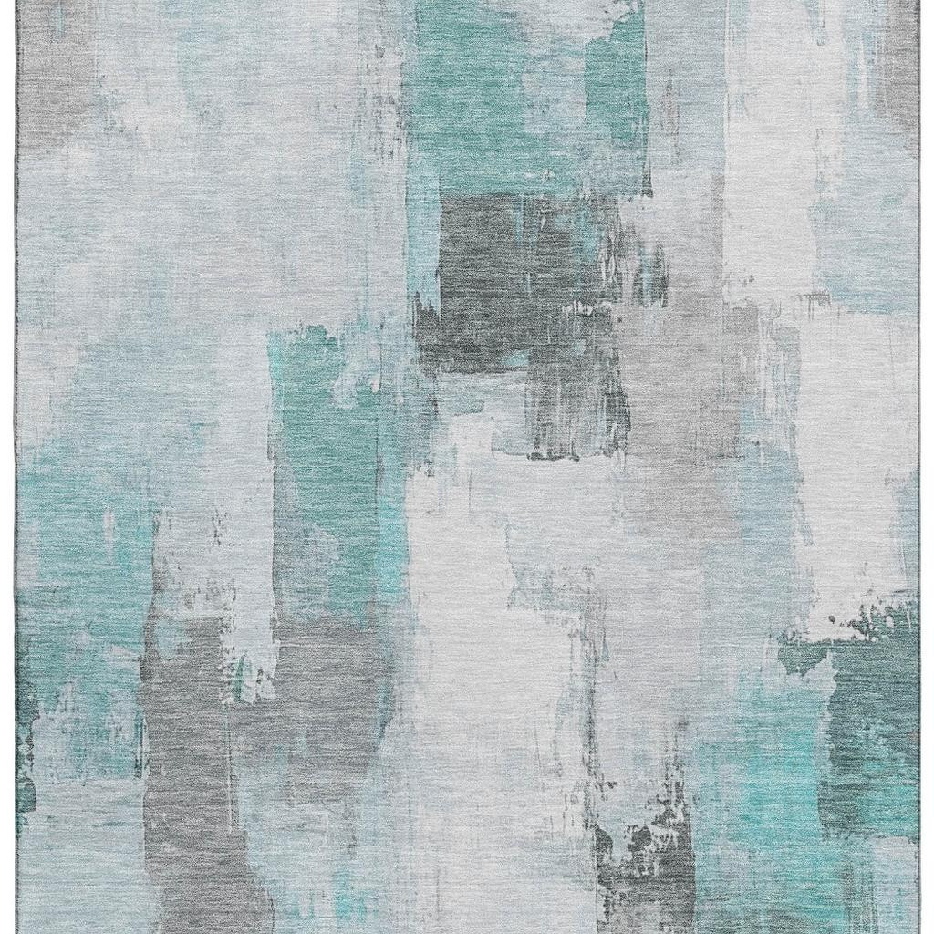This 3-foot x 5-foot teal gray and ivory abstract washable area rug with uv protection, is a great way to add warmth to a room. Ideal for spaces with kids and pets, this rug is stain resistant to help repel dirt and spilled liquids. Built to last, this rug crafted from polyester fibers is known for its durability and long lasting appeal. Rugs are a great way to showcase your style, hide imperfections, warm your home and reduce noise. This smaller sized, transitional styled rug is just what you need for your walkway, bedside, in front of door, cabinet, refrigerator, or chair. 36.00-inch h x 60.00-inch w x 0.39-inch d.