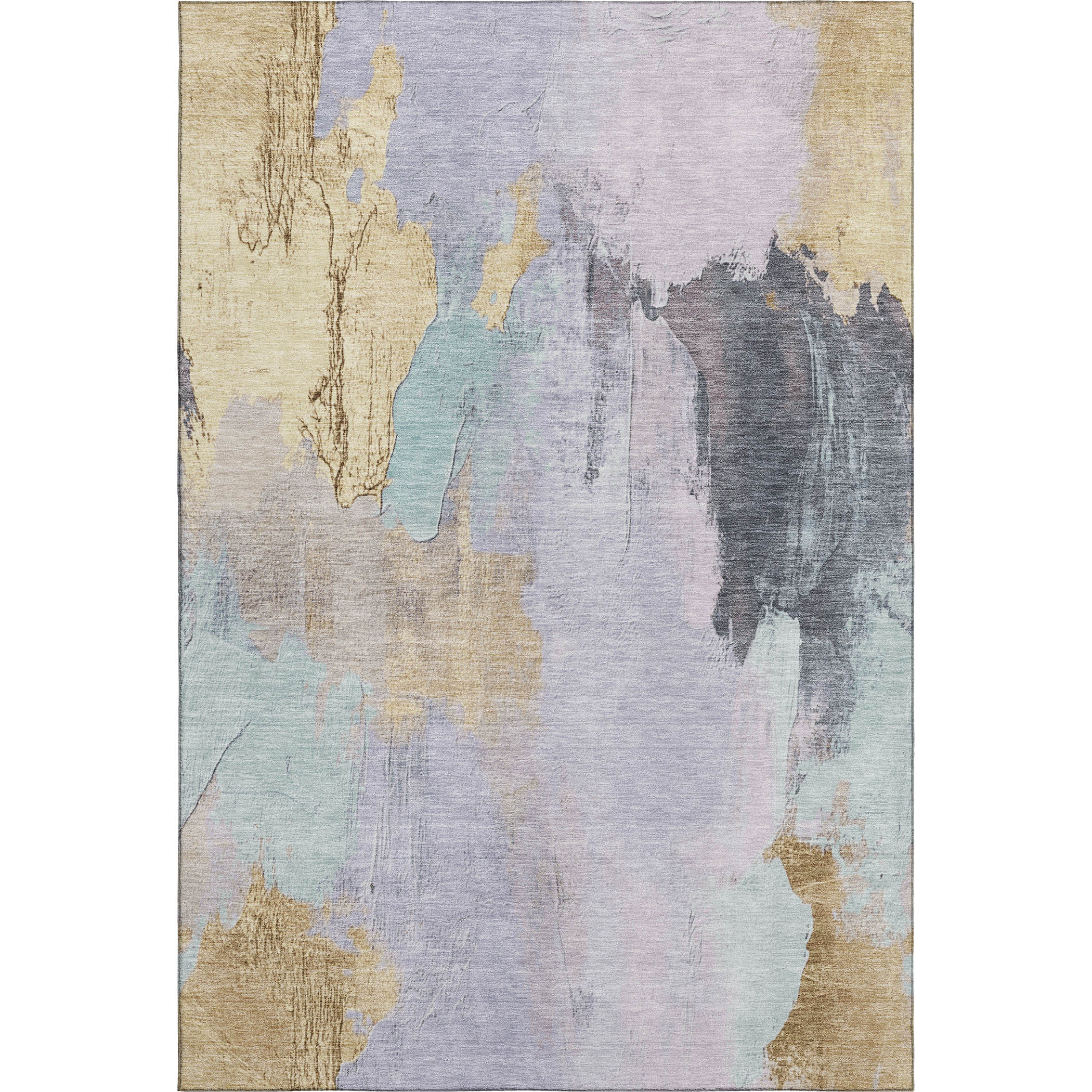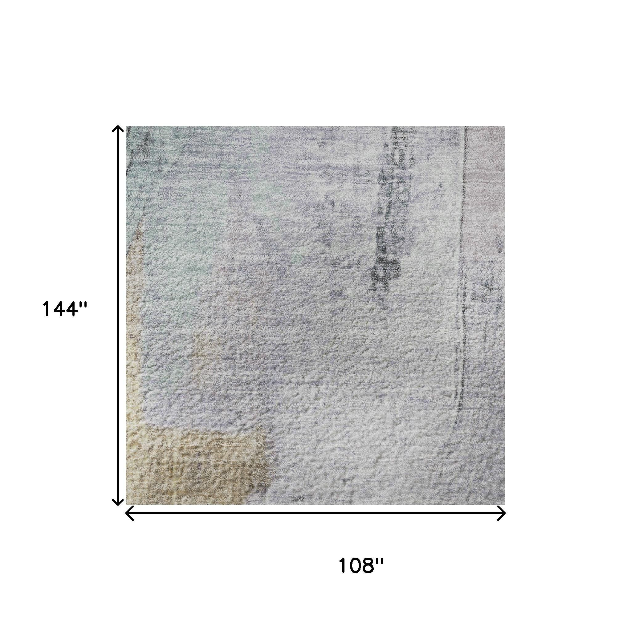 This 9-foot x 12-foot lavender gold and charcoal abstract washable area rug with uv protection, is a great way to add warmth to a room. Ideal for spaces with kids and pets, this rug is stain resistant to help repel dirt and spilled liquids. Built to last, this rug crafted from polyester fibers is known for its durability and long lasting appeal. Rugs are a great way to showcase your style, hide imperfections, warm your home and reduce noise. This larger sized, transitional styled rug is ready to create a focal point or statement piece in your room. 108.00-inch h x 144.00-inch w x 0.39-inch d.