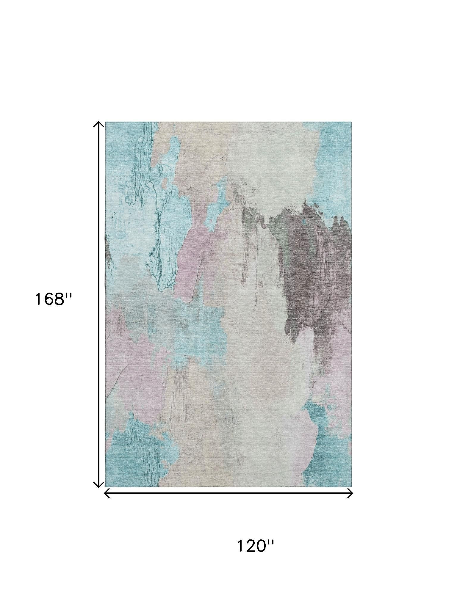 Add great coloration and comfortable texture to your space with this 10-foot x 14-foot teal beige and gray abstract washable area rug with uv protection. Ideal for spaces with kids and pets, this rug is stain resistant to help repel dirt and spilled liquids. Built to last, this rug crafted from polyester fibers is known for its durability and long lasting appeal. Rugs are a great way to showcase your style, hide imperfections, warm your home and reduce noise. This larger sized, transitional styled rug is ready to create a focal point or statement piece in your room. 120.00-inch h x 168.00-inch w x 0.39-inch d.