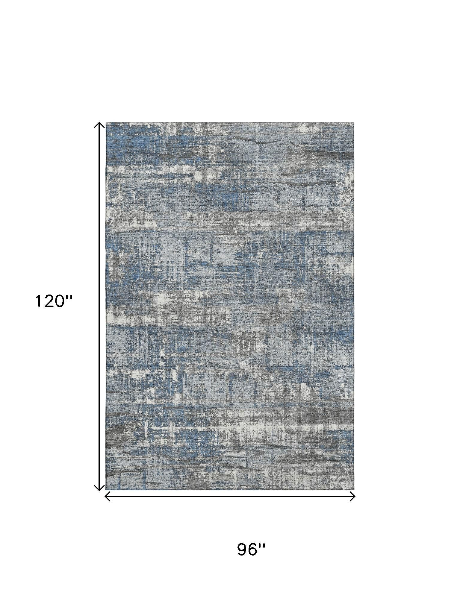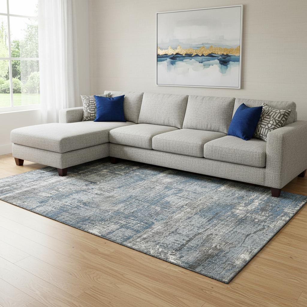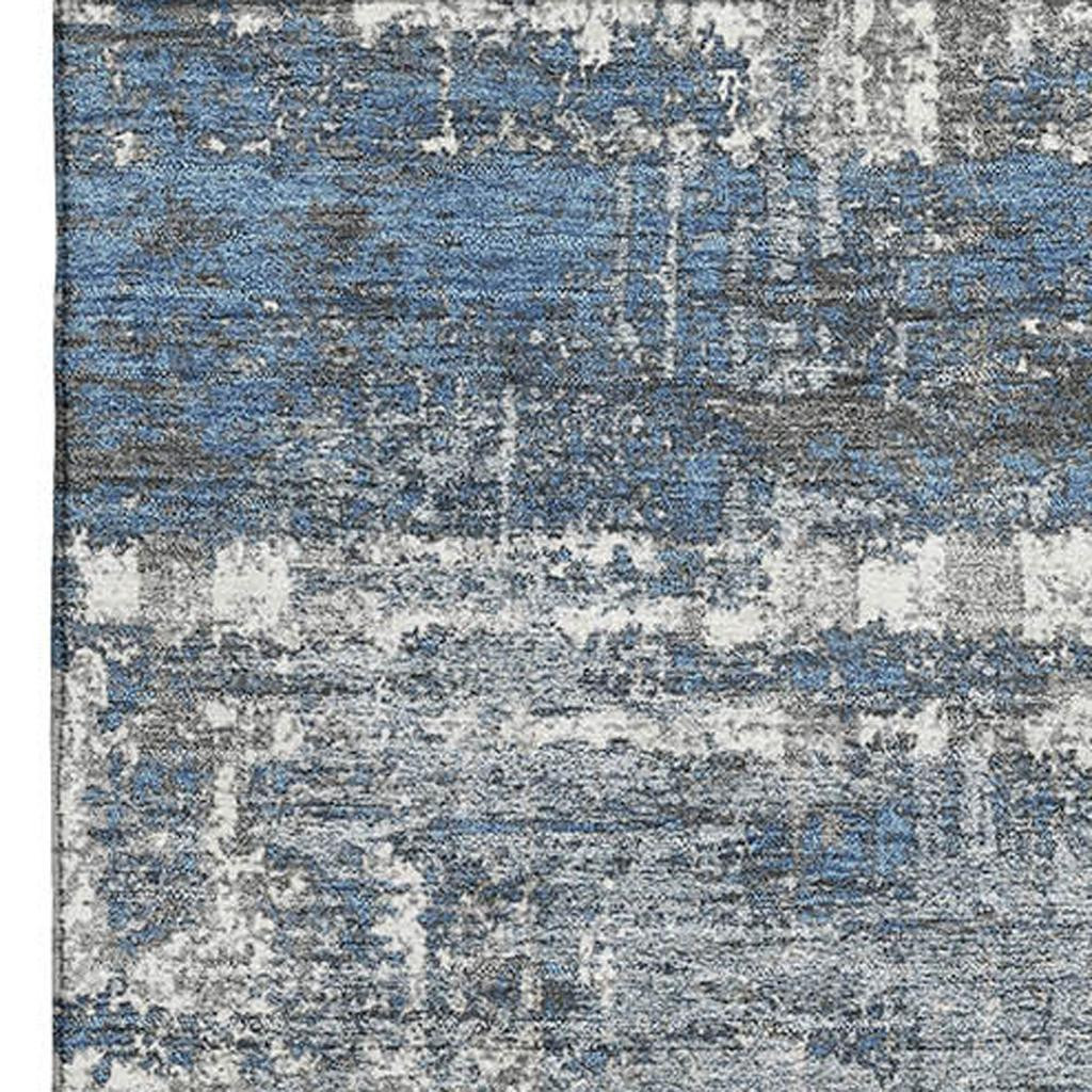 Set an inviting tone in your space with this 8-foot x 10-foot denim blue gray and ivory geometric washable area rug with uv protection. Ideal for spaces with kids and pets, this rug is stain resistant to help repel dirt and spilled liquids. Built to last, this rug crafted from polyester fibers is known for its durability and long lasting appeal. Rugs are a great way to showcase your style, hide imperfections, warm your home and reduce noise. This larger sized, transitional styled rug is ready to create a focal point or statement piece in your room. 96.00-inch h x 120.00-inch w x 0.39-inch d.