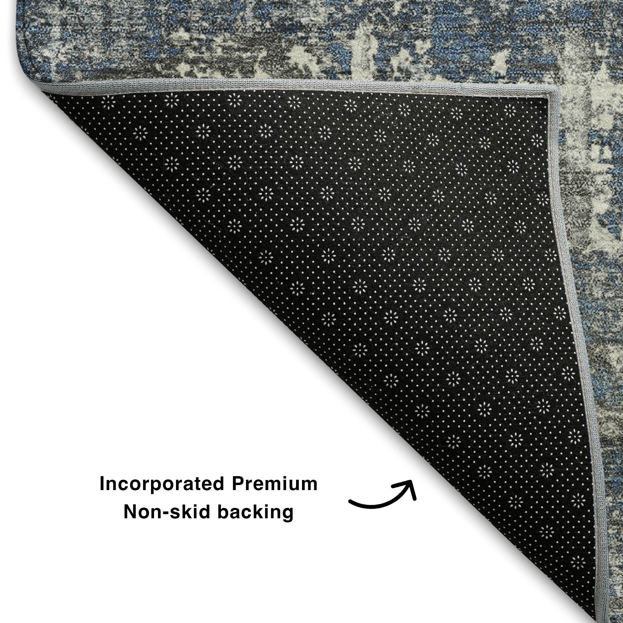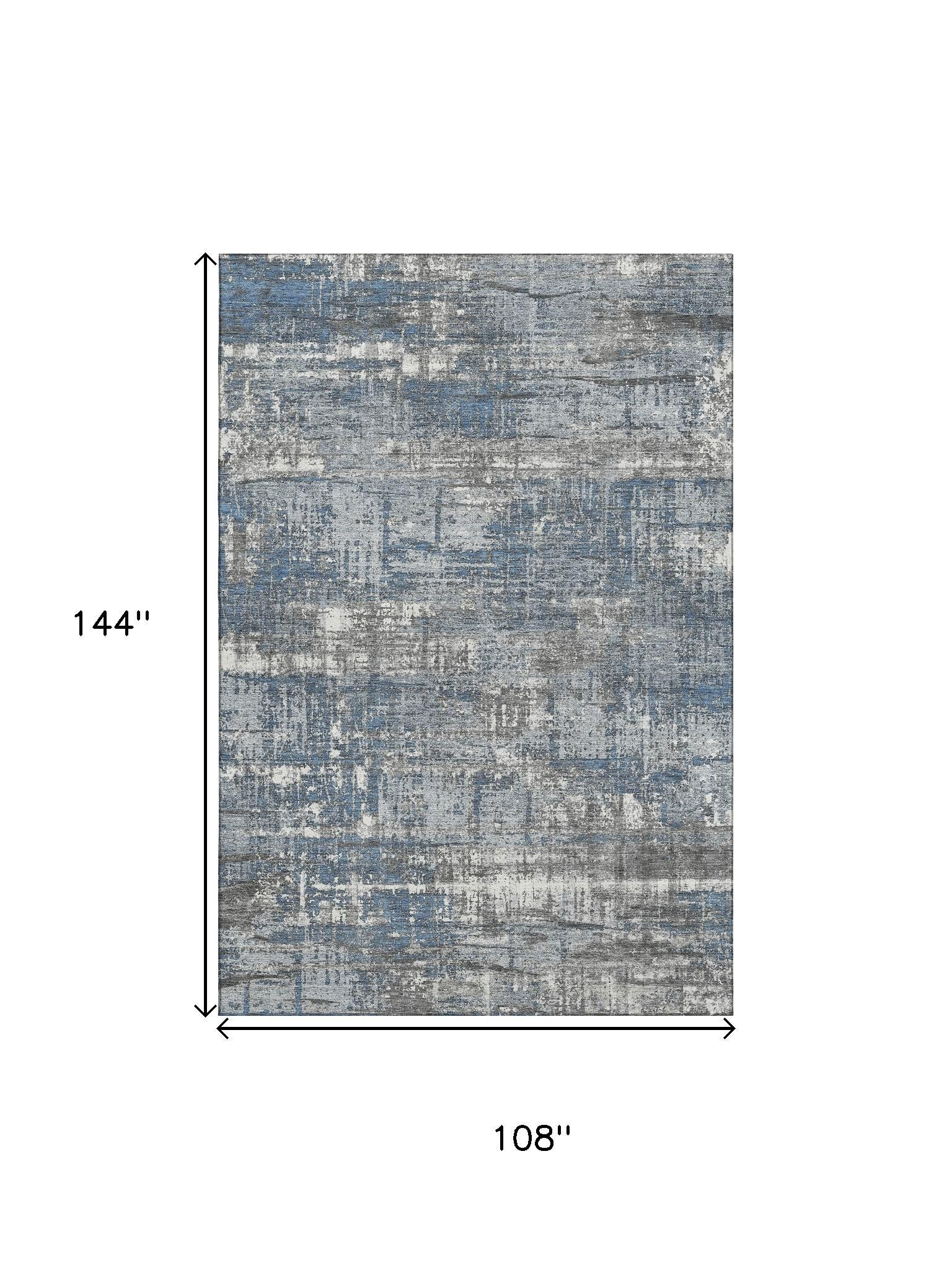 Set an inviting tone in your space with this 9-foot x 12-foot denim blue gray and ivory geometric washable area rug with uv protection. Ideal for spaces with kids and pets, this rug is stain resistant to help repel dirt and spilled liquids. Built to last, this rug crafted from polyester fibers is known for its durability and long lasting appeal. Rugs are a great way to showcase your style, hide imperfections, warm your home and reduce noise. This larger sized, transitional styled rug is ready to create a focal point or statement piece in your room. 108.00-inch h x 144.00-inch w x 0.39-inch d.