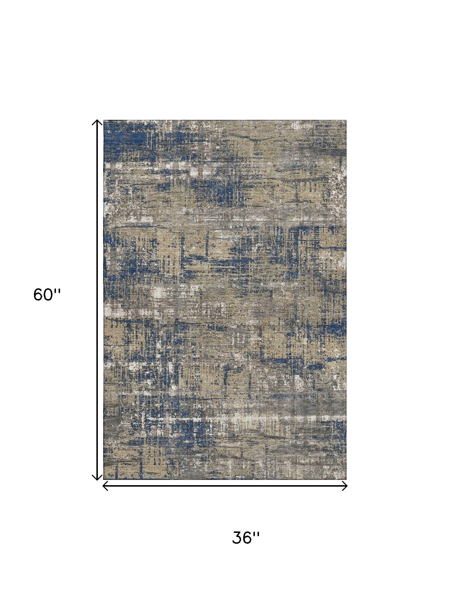 Set an inviting tone in your space with this 3-foot x 5-foot navy blue taupe and beige geometric washable area rug with uv protection. Ideal for spaces with kids and pets, this rug is stain resistant to help repel dirt and spilled liquids. Built to last, this rug crafted from polyester fibers is known for its durability and long lasting appeal. Rugs are a great way to showcase your style, hide imperfections, warm your home and reduce noise. This smaller sized, transitional styled rug is just what you need for your walkway, bedside, in front of door, cabinet, refrigerator, or chair. 36.00-inch h x 60.00-inch w x 0.39-inch d.