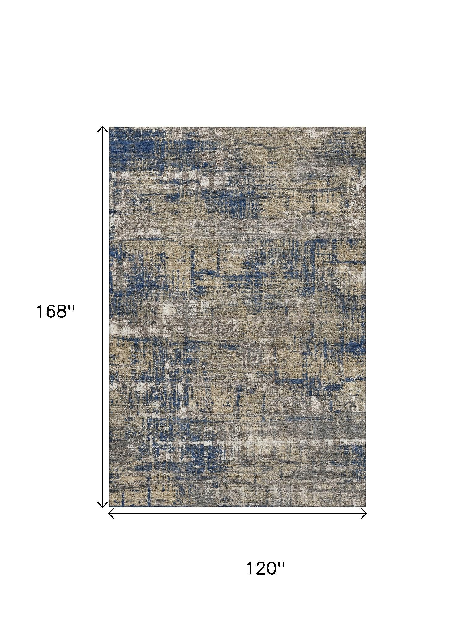 This 10-foot x 14-foot navy blue taupe and beige geometric washable area rug with uv protection, is a great way to add warmth to a room. Ideal for spaces with kids and pets, this rug is stain resistant to help repel dirt and spilled liquids. Built to last, this rug crafted from polyester fibers is known for its durability and long lasting appeal. Rugs are a great way to showcase your style, hide imperfections, warm your home and reduce noise. This larger sized, transitional styled rug is ready to create a focal point or statement piece in your room. 120.00-inch h x 168.00-inch w x 0.39-inch d.