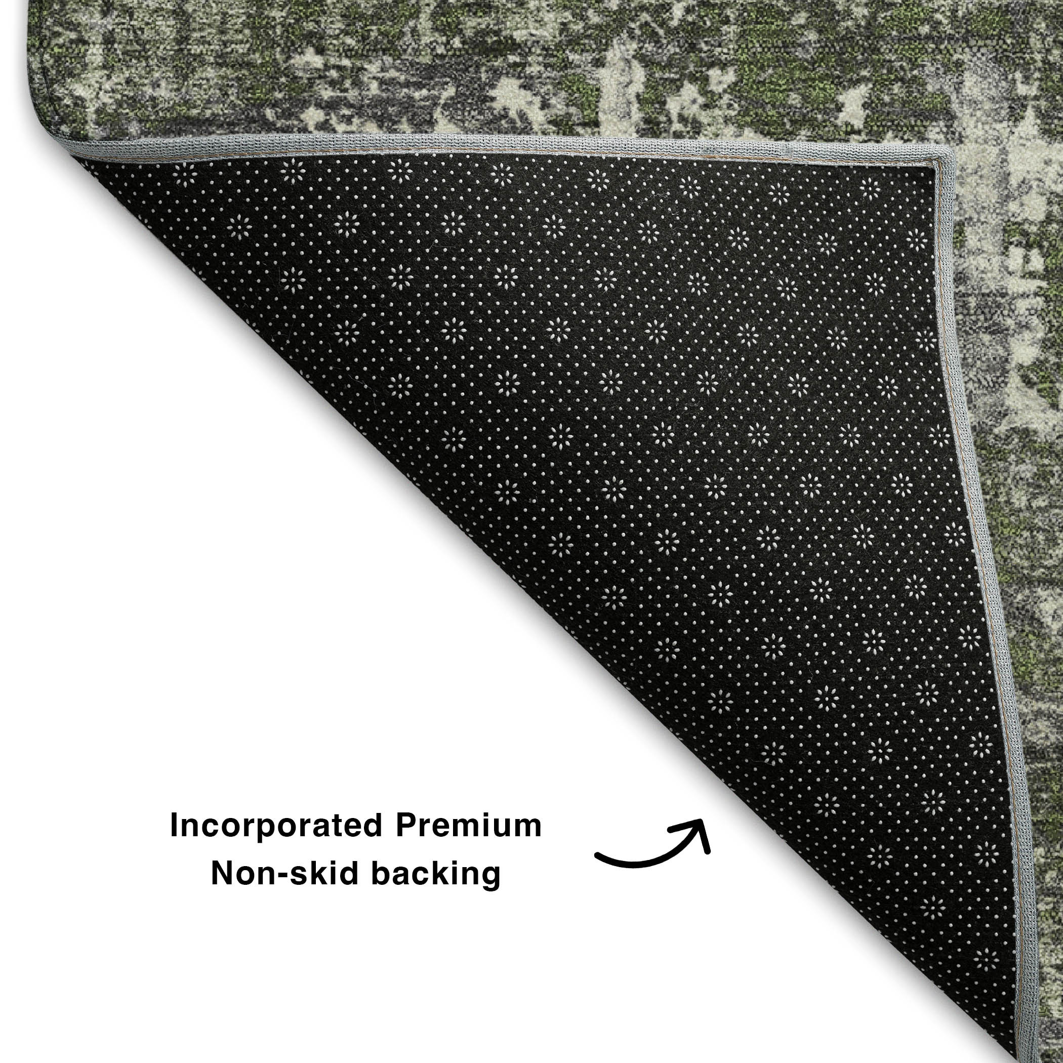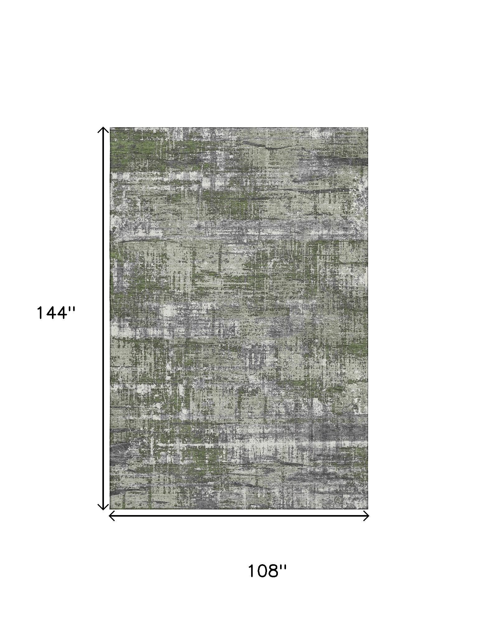 This 9-foot x 12-foot olive green ivory and gray geometric washable area rug with uv protection, is a great way to add warmth to a room. Ideal for spaces with kids and pets, this rug is stain resistant to help repel dirt and spilled liquids. Built to last, this rug crafted from polyester fibers is known for its durability and long lasting appeal. Rugs are a great way to showcase your style, hide imperfections, warm your home and reduce noise. This larger sized, transitional styled rug is ready to create a focal point or statement piece in your room. 108.00-inch h x 144.00-inch w x 0.39-inch d.