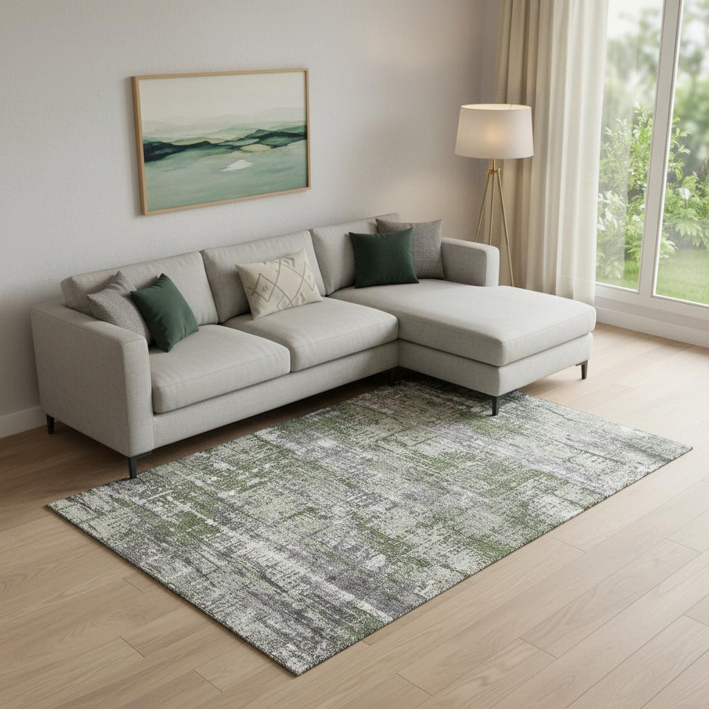 This 10-foot x 14-foot olive green ivory and gray geometric washable area rug with uv protection, is a great way to add warmth to a room. Ideal for spaces with kids and pets, this rug is stain resistant to help repel dirt and spilled liquids. Built to last, this rug crafted from polyester fibers is known for its durability and long lasting appeal. Rugs are a great way to showcase your style, hide imperfections, warm your home and reduce noise. This larger sized, transitional styled rug is ready to create a focal point or statement piece in your room. 120.00-inch h x 168.00-inch w x 0.39-inch d.