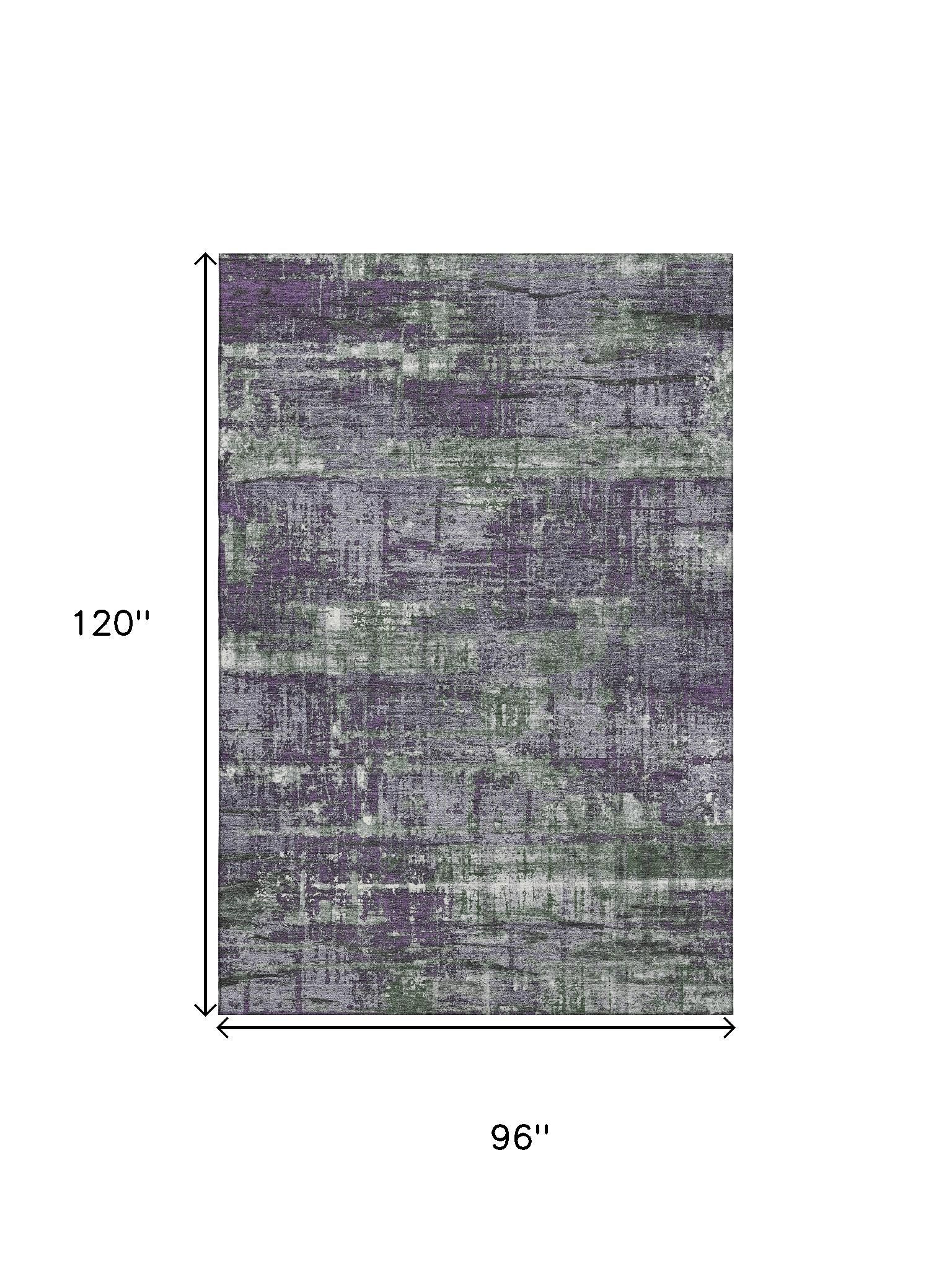 Add some artistry to your room with this 8-foot x 10-foot purple green and ivory geometric washable area rug with uv protection. Ideal for spaces with kids and pets, this rug is stain resistant to help repel dirt and spilled liquids. Built to last, this rug crafted from polyester fibers is known for its durability and long lasting appeal. Rugs are a great way to showcase your style, hide imperfections, warm your home and reduce noise. This larger sized, transitional styled rug is ready to create a focal point or statement piece in your room. 96.00-inch h x 120.00-inch w x 0.39-inch d.