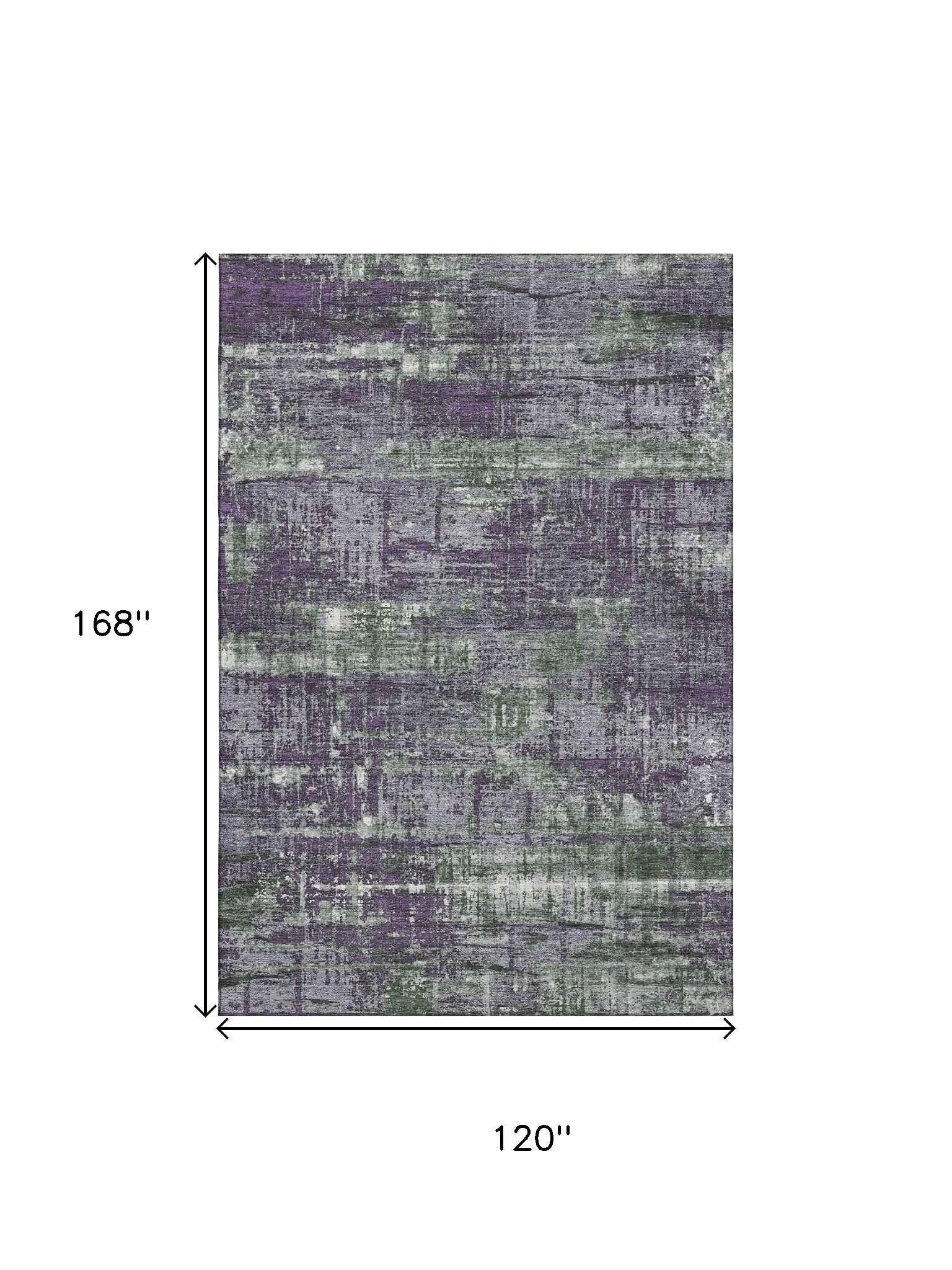 Set an inviting tone in your space with this 10-foot x 14-foot purple green and ivory geometric washable area rug with uv protection. Ideal for spaces with kids and pets, this rug is stain resistant to help repel dirt and spilled liquids. Built to last, this rug crafted from polyester fibers is known for its durability and long lasting appeal. Rugs are a great way to showcase your style, hide imperfections, warm your home and reduce noise. This larger sized, transitional styled rug is ready to create a focal point or statement piece in your room. 120.00-inch h x 168.00-inch w x 0.39-inch d.