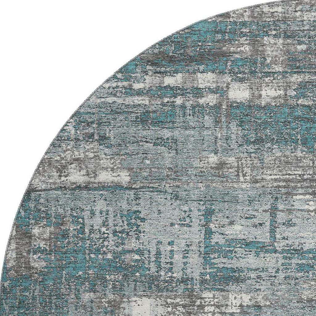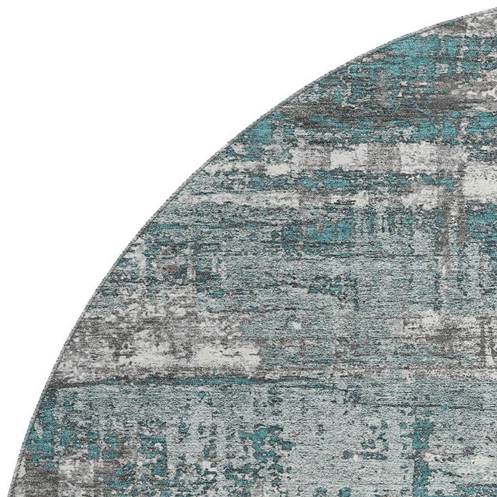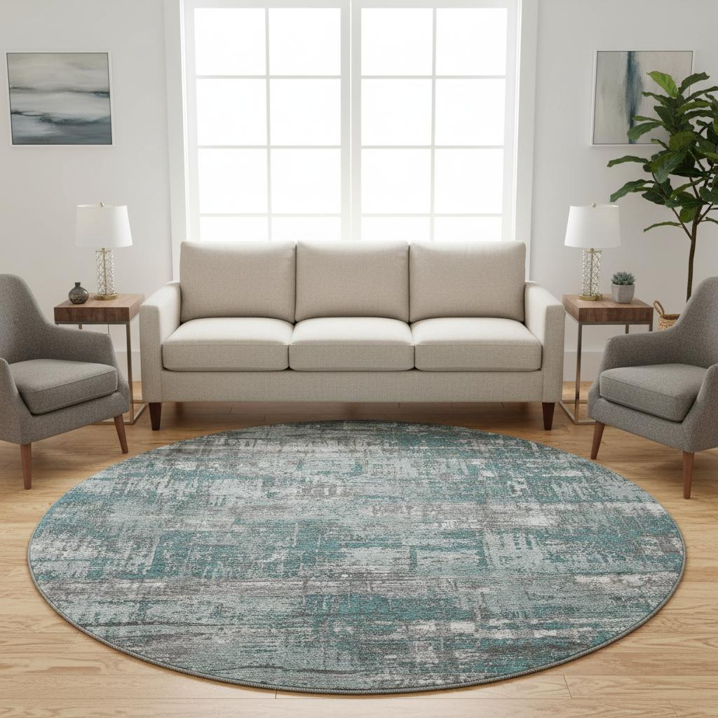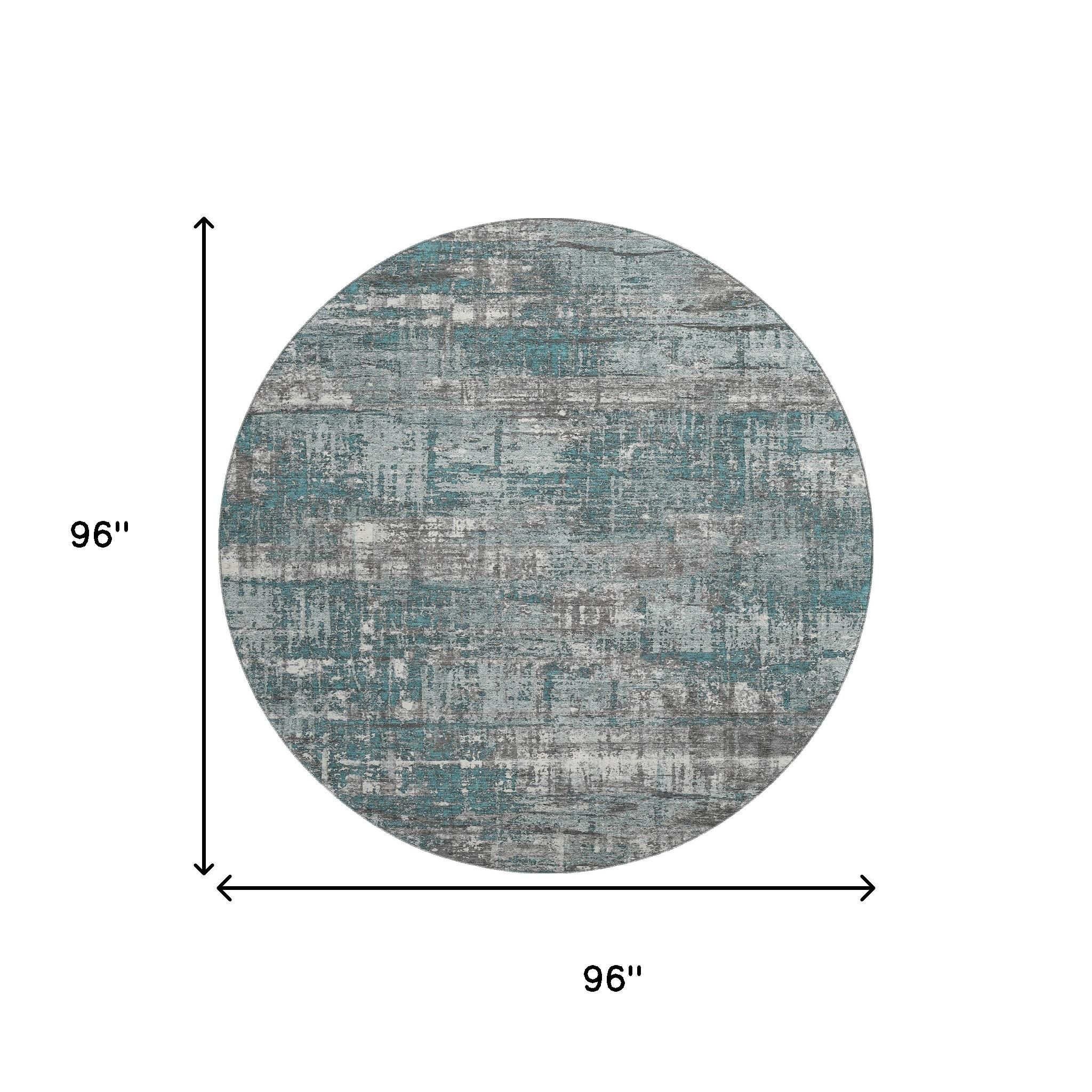 Add great coloration and comfortable texture to your space with this 8-foot teal gray and ivory geometric washable round rug with uv protection. Ideal for spaces with kids and pets, this rug is stain resistant to help repel dirt and spilled liquids. Built to last, this rug crafted from polyester fibers is known for its durability and long lasting appeal. Rugs are a great way to showcase your style, hide imperfections, warm your home and reduce noise. This larger sized, transitional styled rug is ready to create a focal point or statement piece in your room. 96.00-inch h x 96.00-inch w x 0.39-inch d.